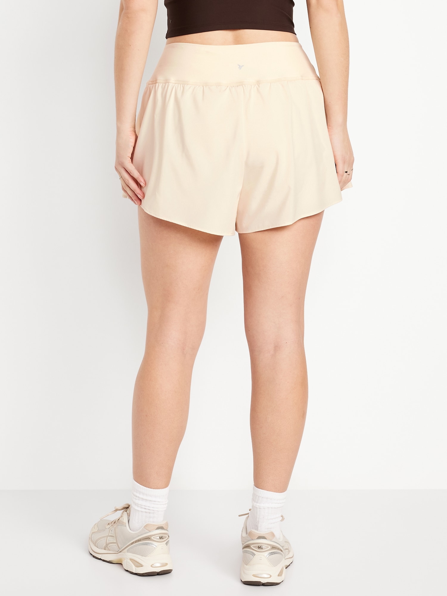 High-Waisted StretchTech 2-in-1 Shorts — 3-inch inseam: Featuring StretchTech. Moisture-wicking and endlessly versatile.high pull-on waistband, built-in bike shorts with side pocket, flouncy outer shorts, go-dry wicks moisture, breathable, #748677