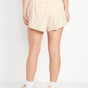 High-Waisted StretchTech 2-in-1 Shorts — 3-inch inseam: Featuring StretchTech. Moisture-wicking and endlessly versatile.high pull-on waistband, built-in bike shorts with side pocket, flouncy outer shorts, go-dry wicks moisture, breathable, #748677