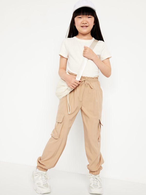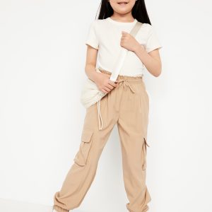 High-Waisted StretchTech Performance Joggers for Girls: high rise, elasticized waistband, functional drawstring, diagonal utility pockets, cargo flap pockets at each leg, cinched leg cuffs, #766991