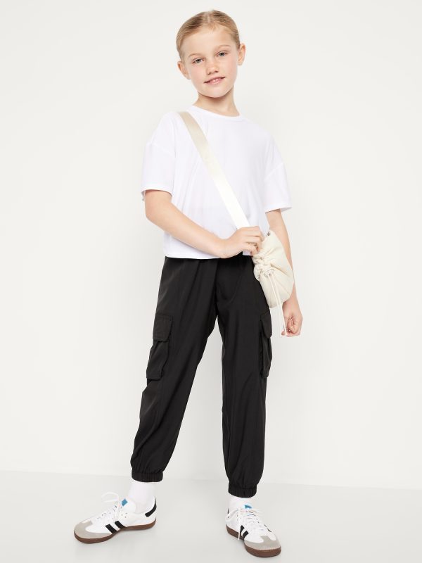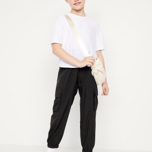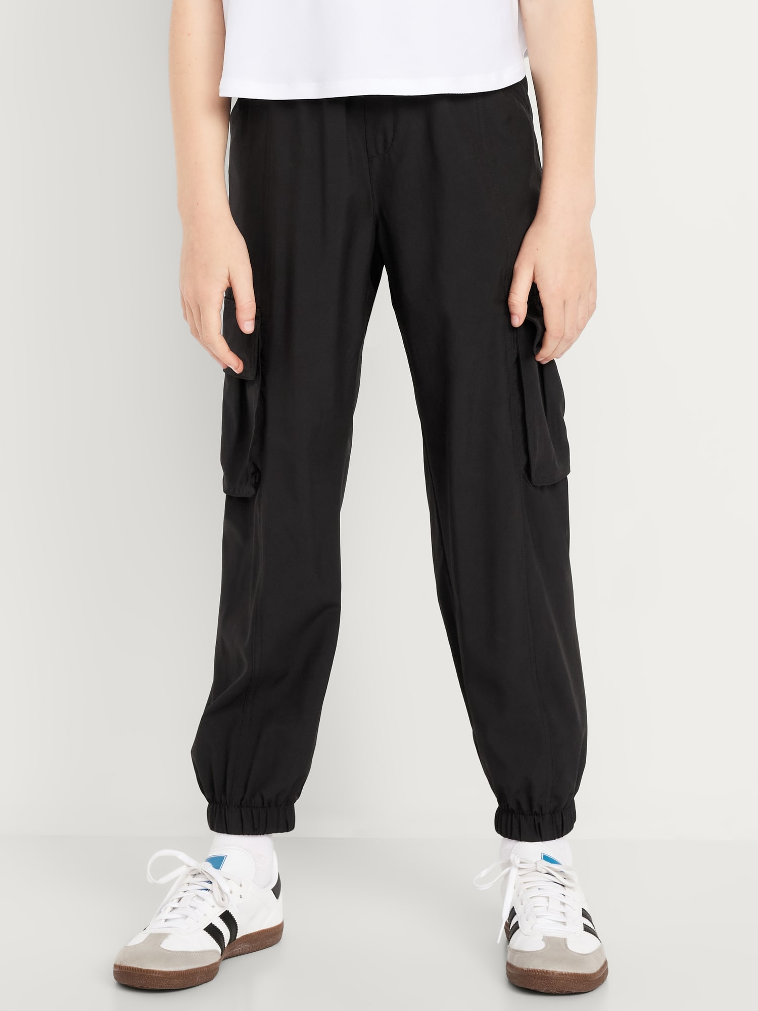 High-Waisted StretchTech Performance Joggers for Girls: high rise, elasticized waistband, functional drawstring, diagonal utility pockets, cargo flap pockets at each leg, cinched leg cuffs, #766991