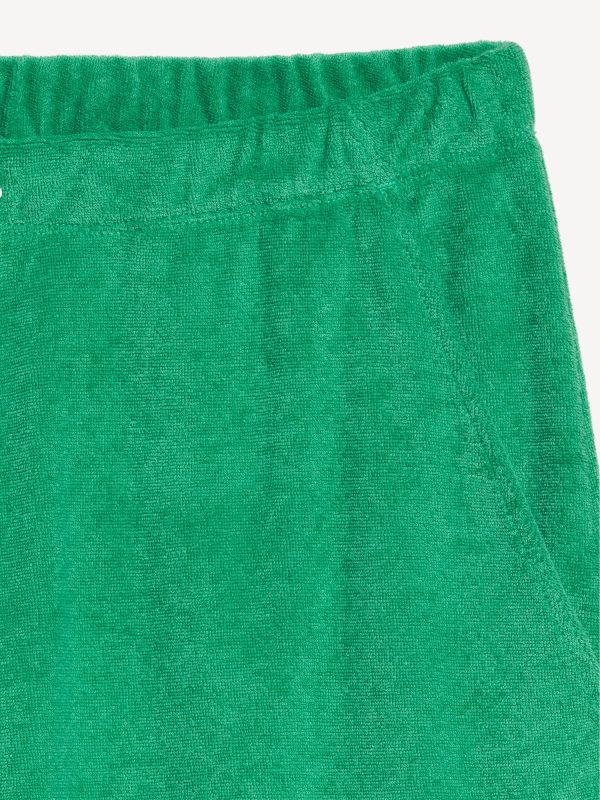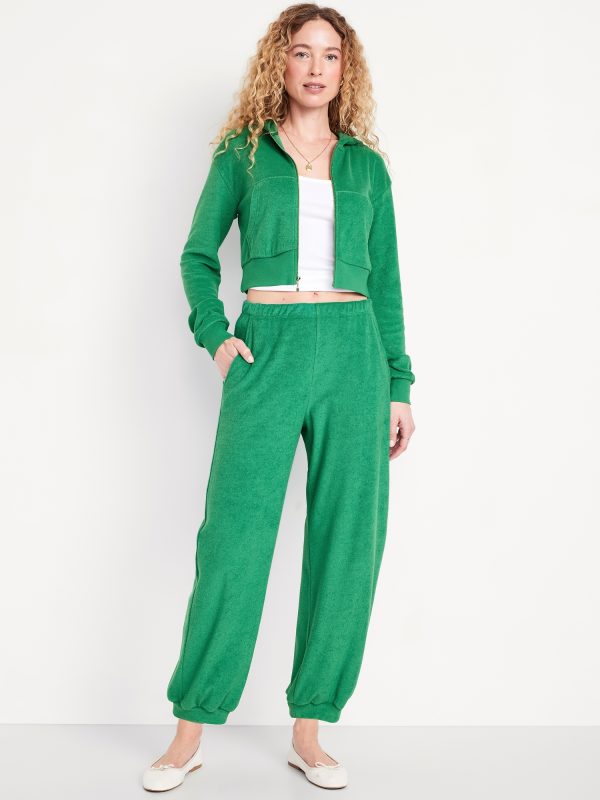 High-Waisted Towel Terry Barrel Ankle Pants: elastic waistband, on-seam pockets, cuffed barrel leg, #749658