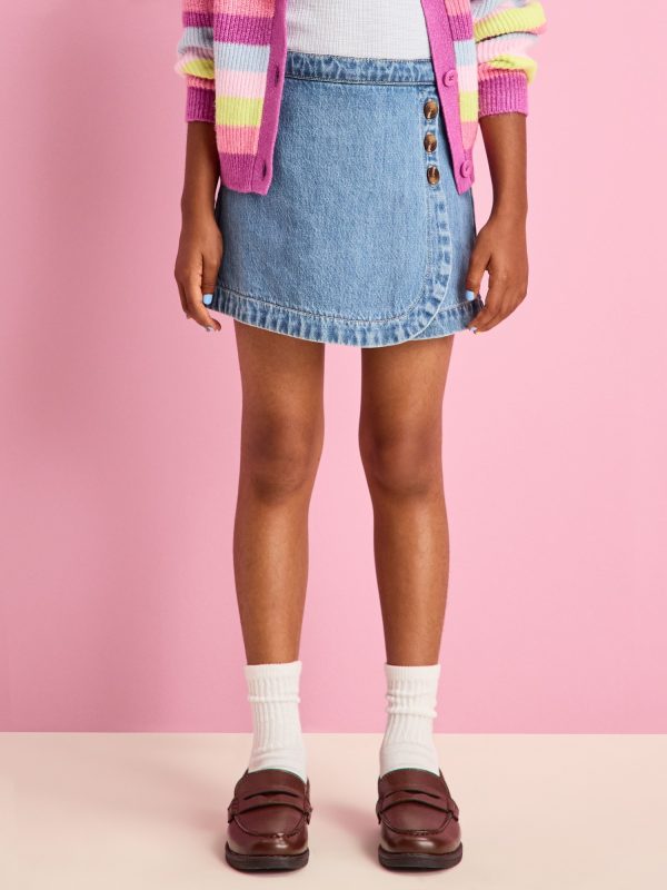 High-Waisted Wrap-Front Jean Skort for Girls