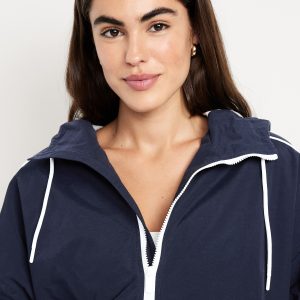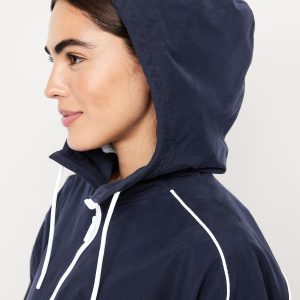 Hooded Zip Windbreaker: drawcord hood, long sleeves with contrasting piping, elastic cuffs, full-zip front, front flap pockets, bungee hem, #844570