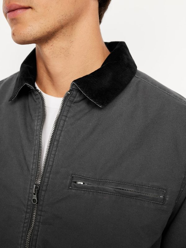 Insulated Canvas Barn Jacket: spread collar, long sleeves, full-zip front, zip-welt chest pocket, vertical welt pockets, all-over print, fully lined, #800306
