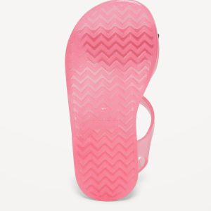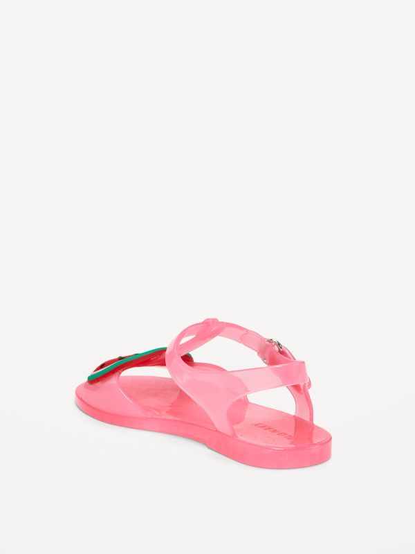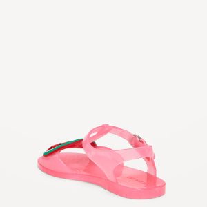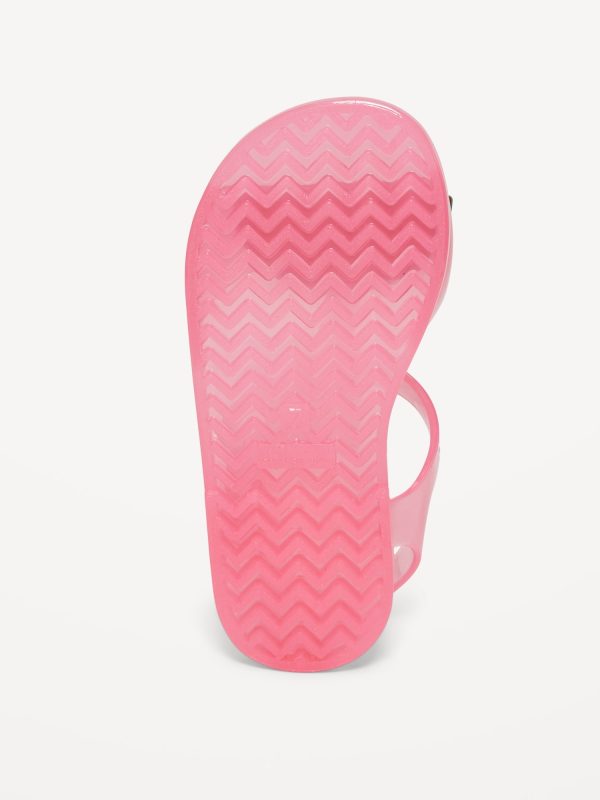 Jelly T-Strap Sandals for Toddler Girls: t-strap thong upper, firm foot bed, textured outsole, graphic across foot, glitter pattern or solid jelly, #688628
