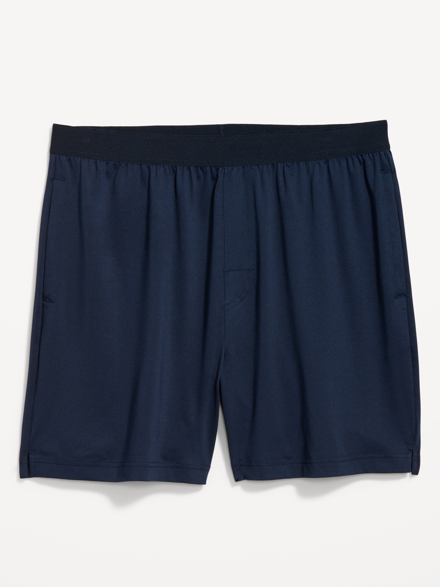 Jersey Pajama Shorts for Men: exposed elastic waistband, fly front, on-seam hip pockets, #693403