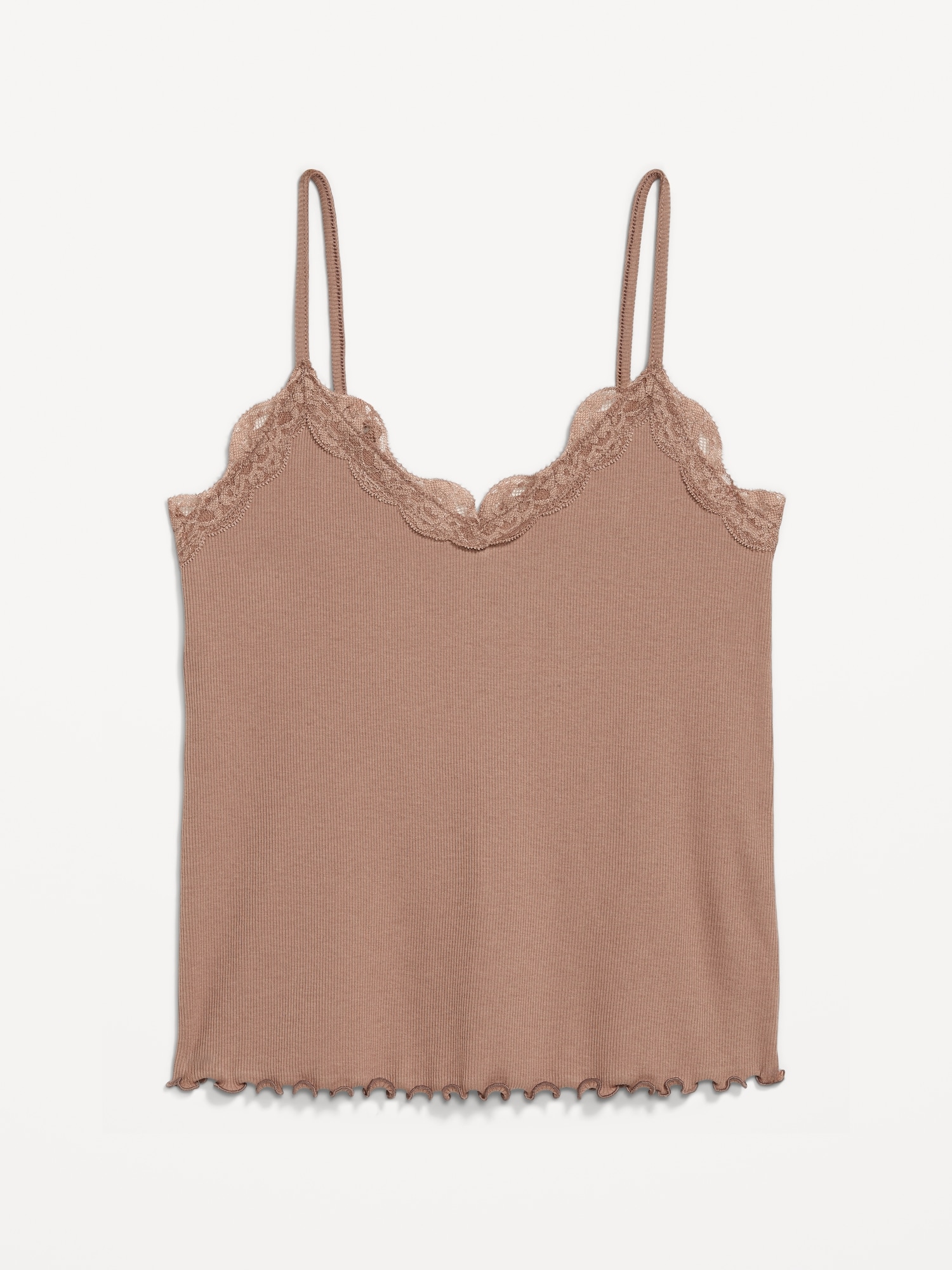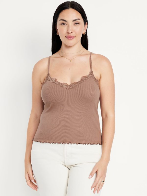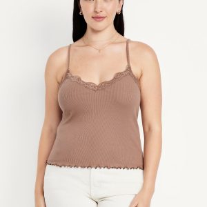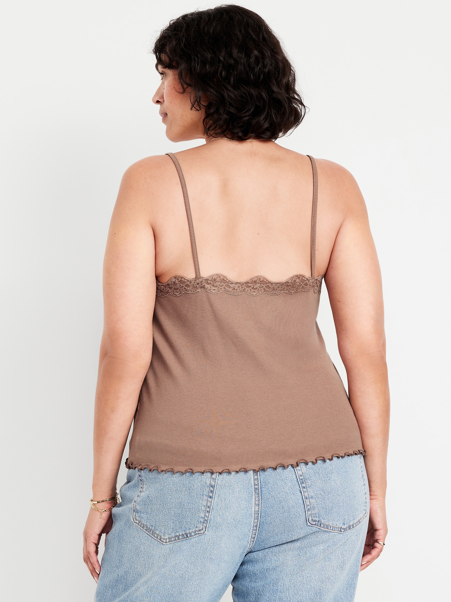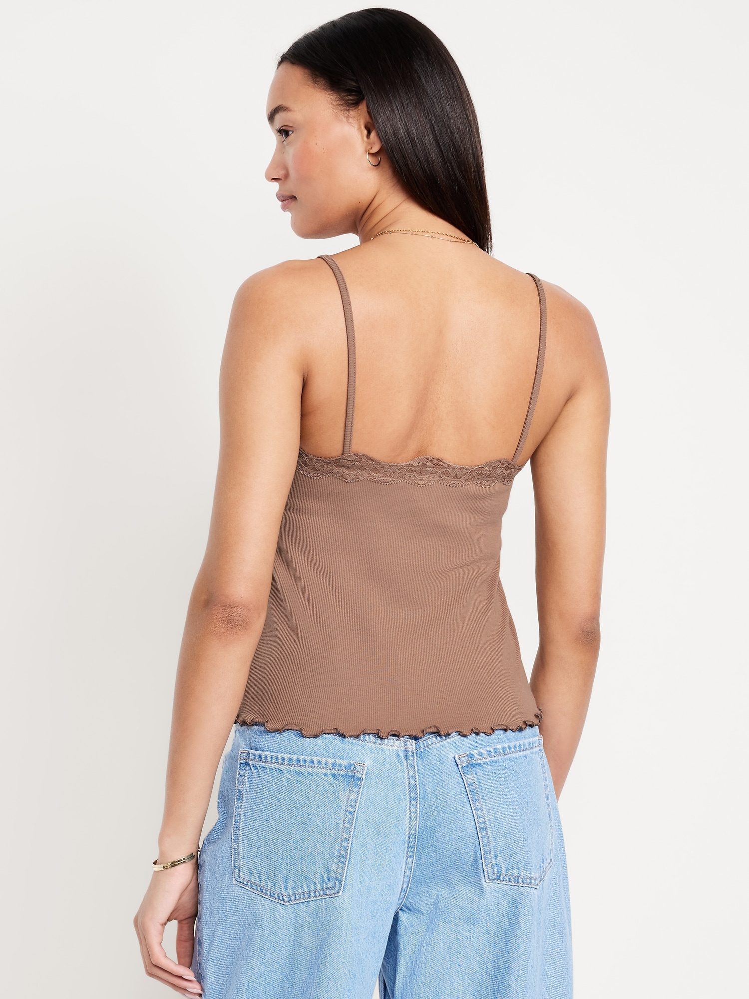 Lace-Trim Cami Tank Top: lace-trim v-neck, adjustable straps, #749270