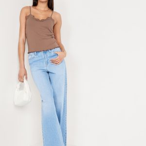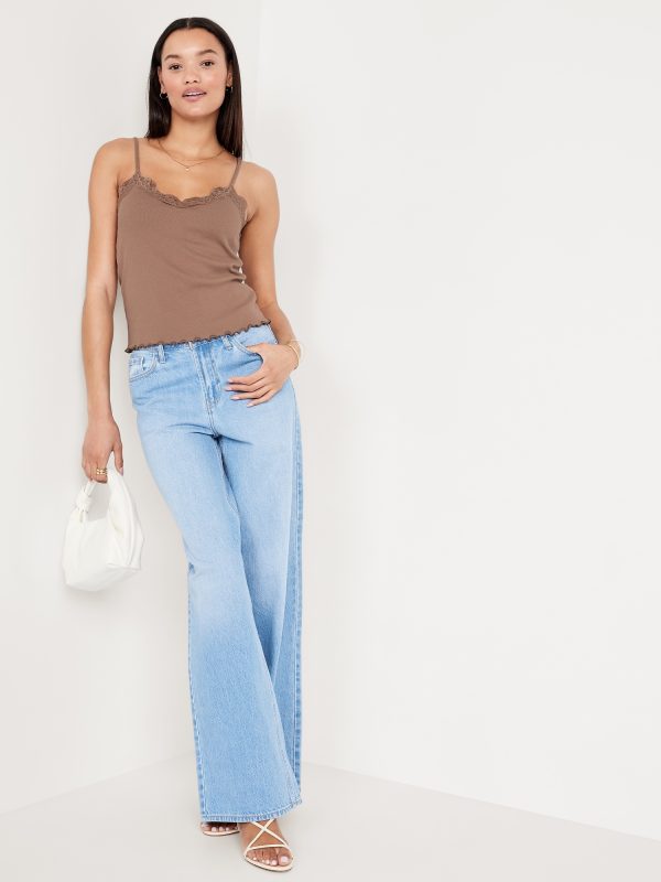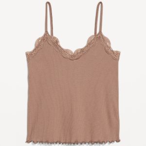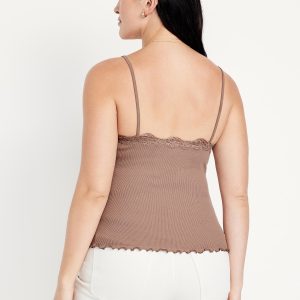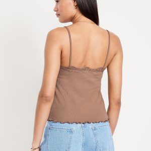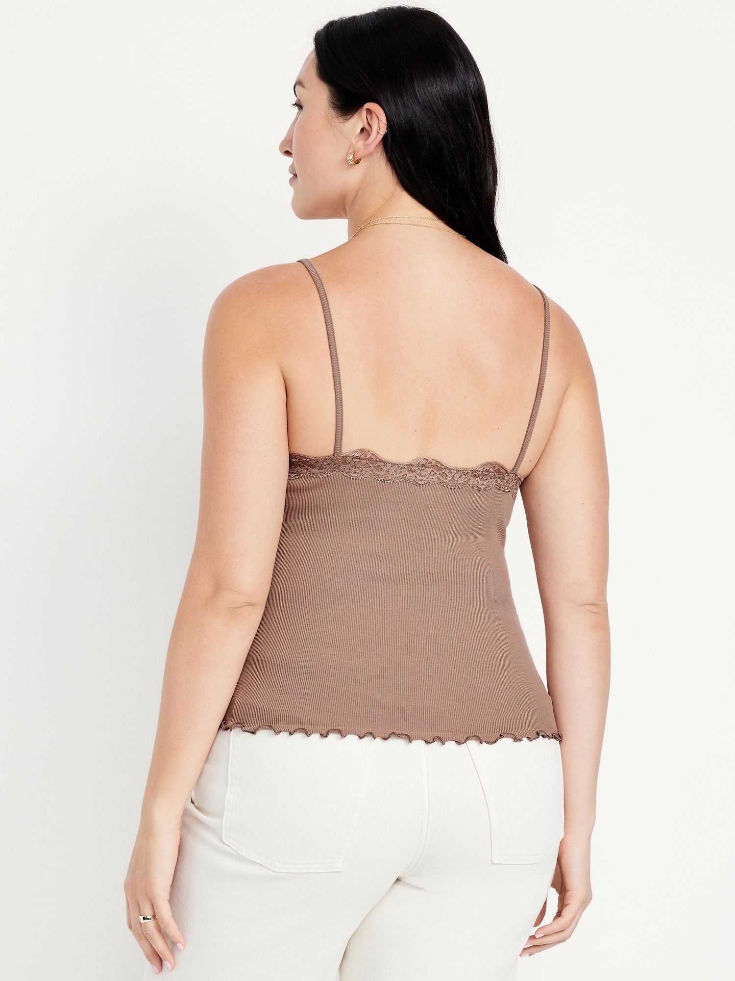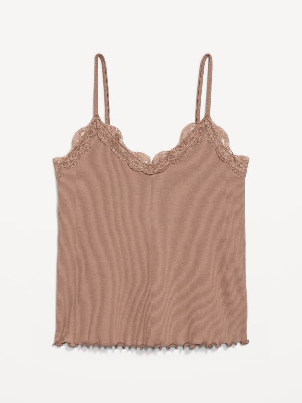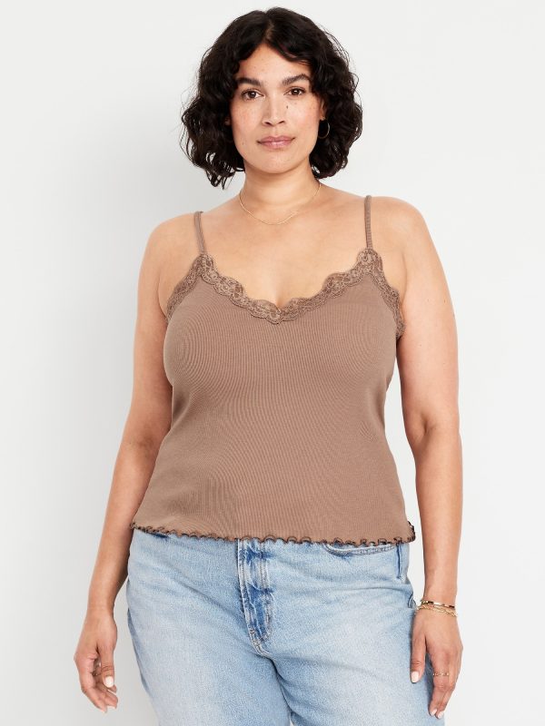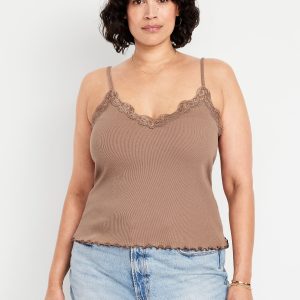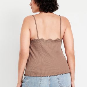 Lace-Trim Cami Tank Top: lace-trim v-neck, adjustable straps, #749270
