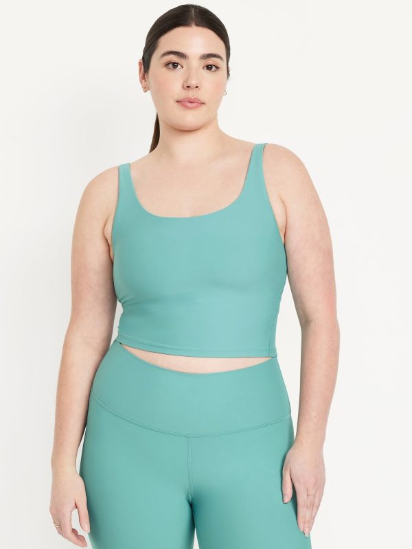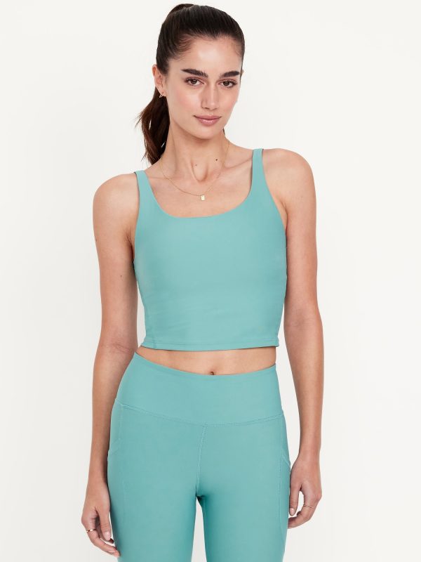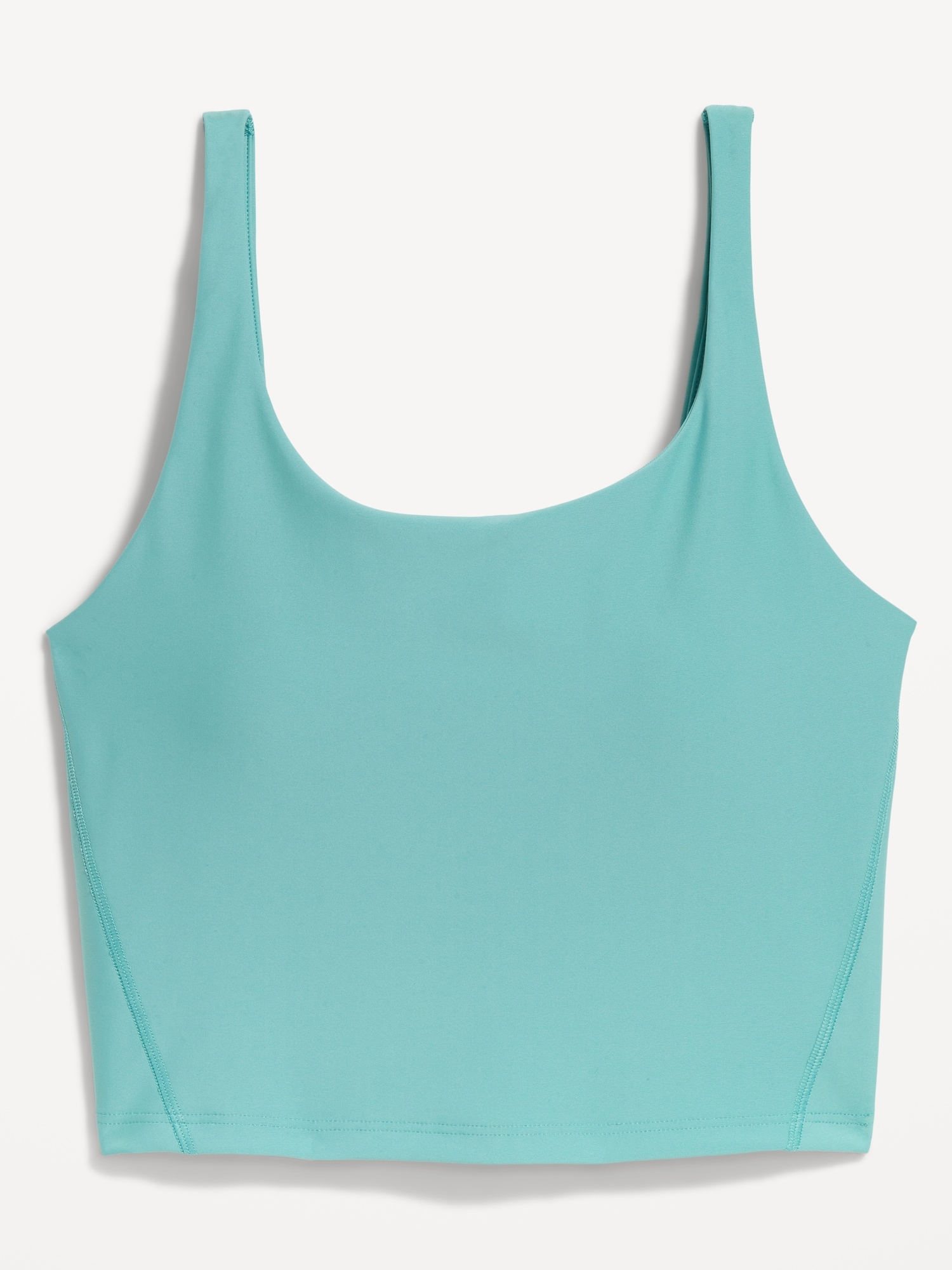 Light Support PowerSoft Longline Sports Bra: Featuring PowerSoft. Light compression meets a peachy-smooth, sweat-wicking fabric.scoop neck, ribbed side panels with piping, racerback, removable cups, shelf bra with brushed-elastic interior hem, go-dry wicks moisture, #749231