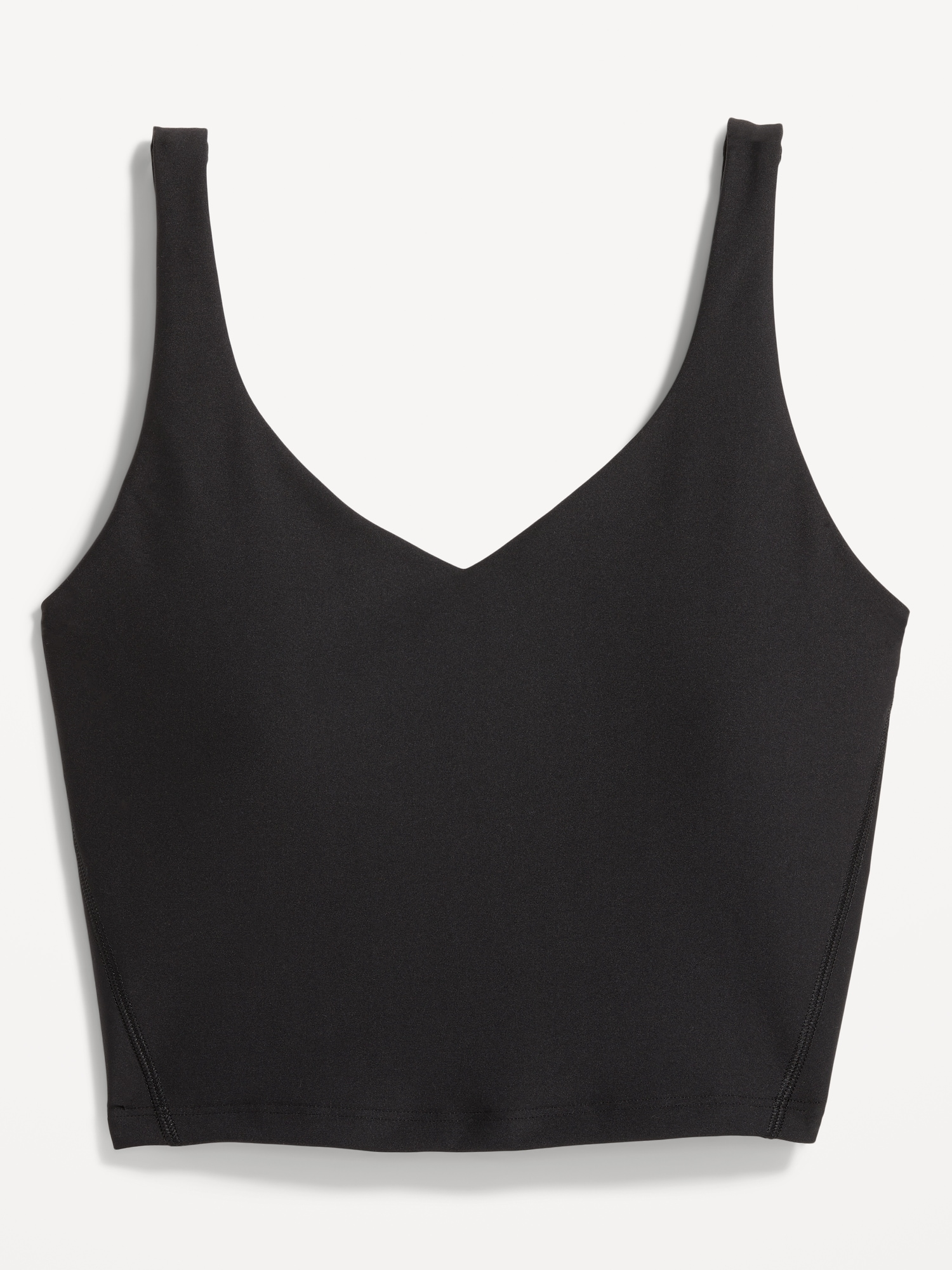 Light Support PowerSoft Longline Sports Bra: Featuring PowerSoft. Light compression meets a peachy-smooth, sweat-wicking fabric.deep v-neck, removable cups, brushed elastic hem, go-dry wicks moisture, #892232