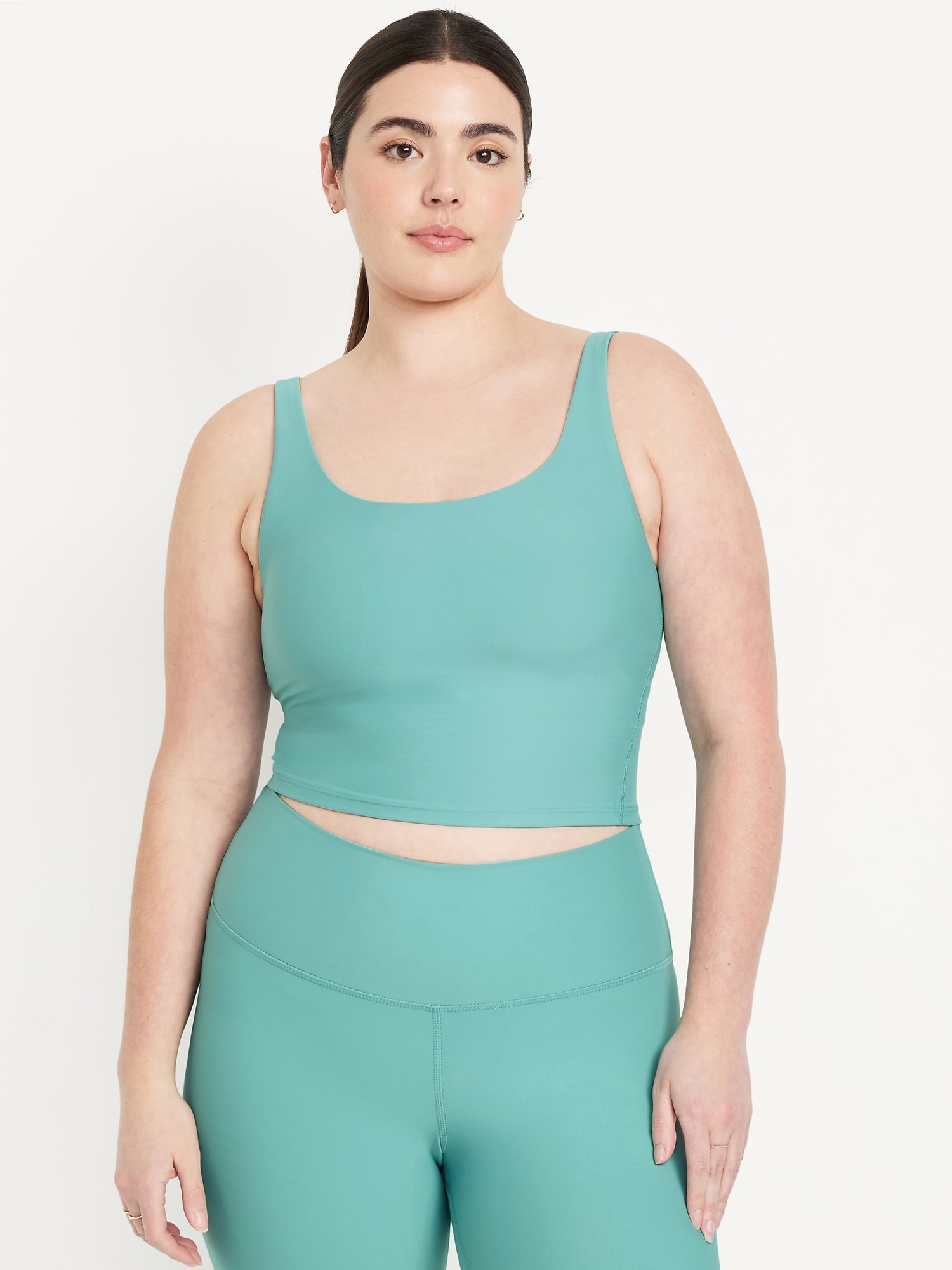 Light Support PowerSoft Longline Sports Bra: Featuring PowerSoft. Light compression meets a peachy-smooth, sweat-wicking fabric.scoop neck, wide straps, removable cups, front mesh lining, go-dry wicks moisture, #723227