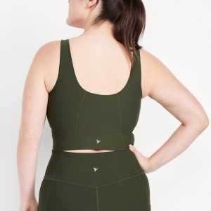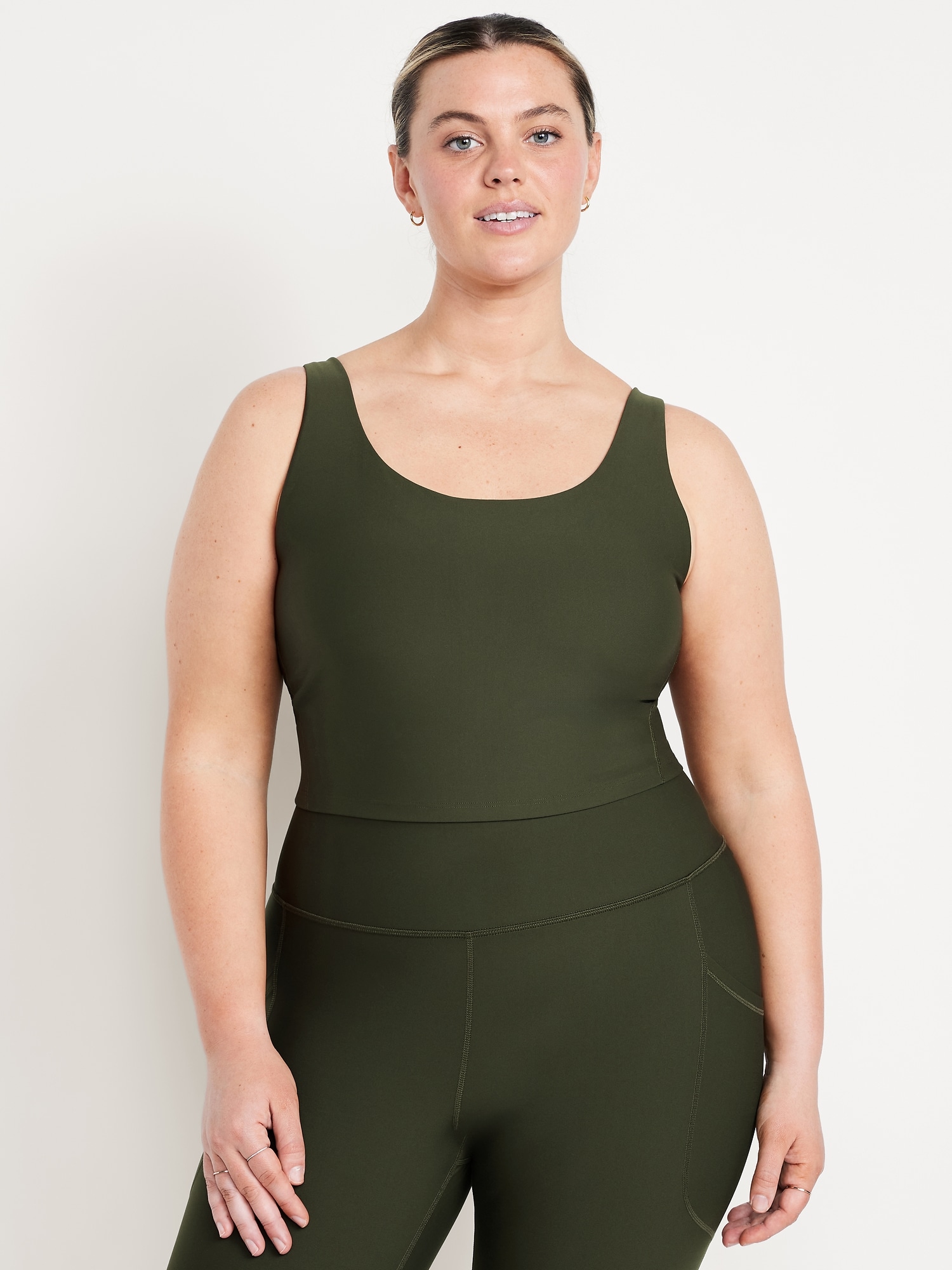 Light Support PowerSoft Longline Sports Bra: Featuring PowerSoft. Light compression meets a peachy-smooth, sweat-wicking fabric.scoop neck, ribbed side panels with piping, racerback, removable cups, shelf bra with brushed-elastic interior hem, go-dry wicks moisture, #749231