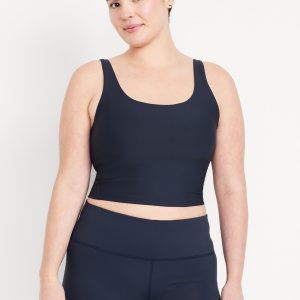 Light Support PowerSoft Longline Sports Bra: Featuring PowerSoft. Light compression meets a peachy-smooth, sweat-wicking fabric.scoop neck, ribbed side panels with piping, racerback, removable cups, shelf bra with brushed-elastic interior hem, go-dry wicks moisture, #749231