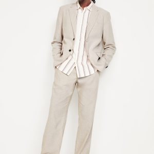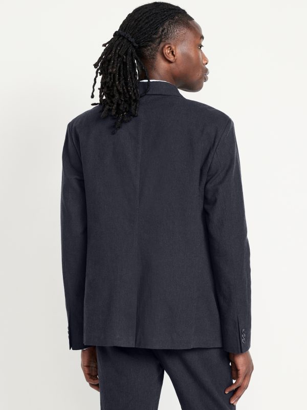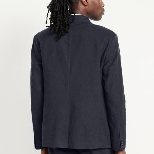 Linen-Blend Blazer: notched lapel, long sleeves, buttoned cuffs, two-button front, welt chest pocket, flap pockets, unlined, #762689