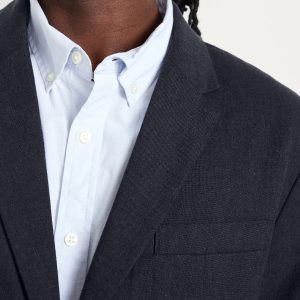 Linen-Blend Blazer: notched lapel, long sleeves, buttoned cuffs, two-button front, welt chest pocket, flap pockets, unlined, #762689