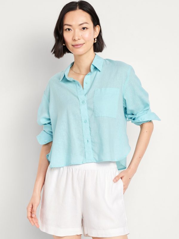 Linen-Blend Button-Down Crop Shirt