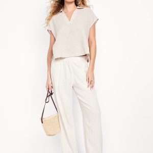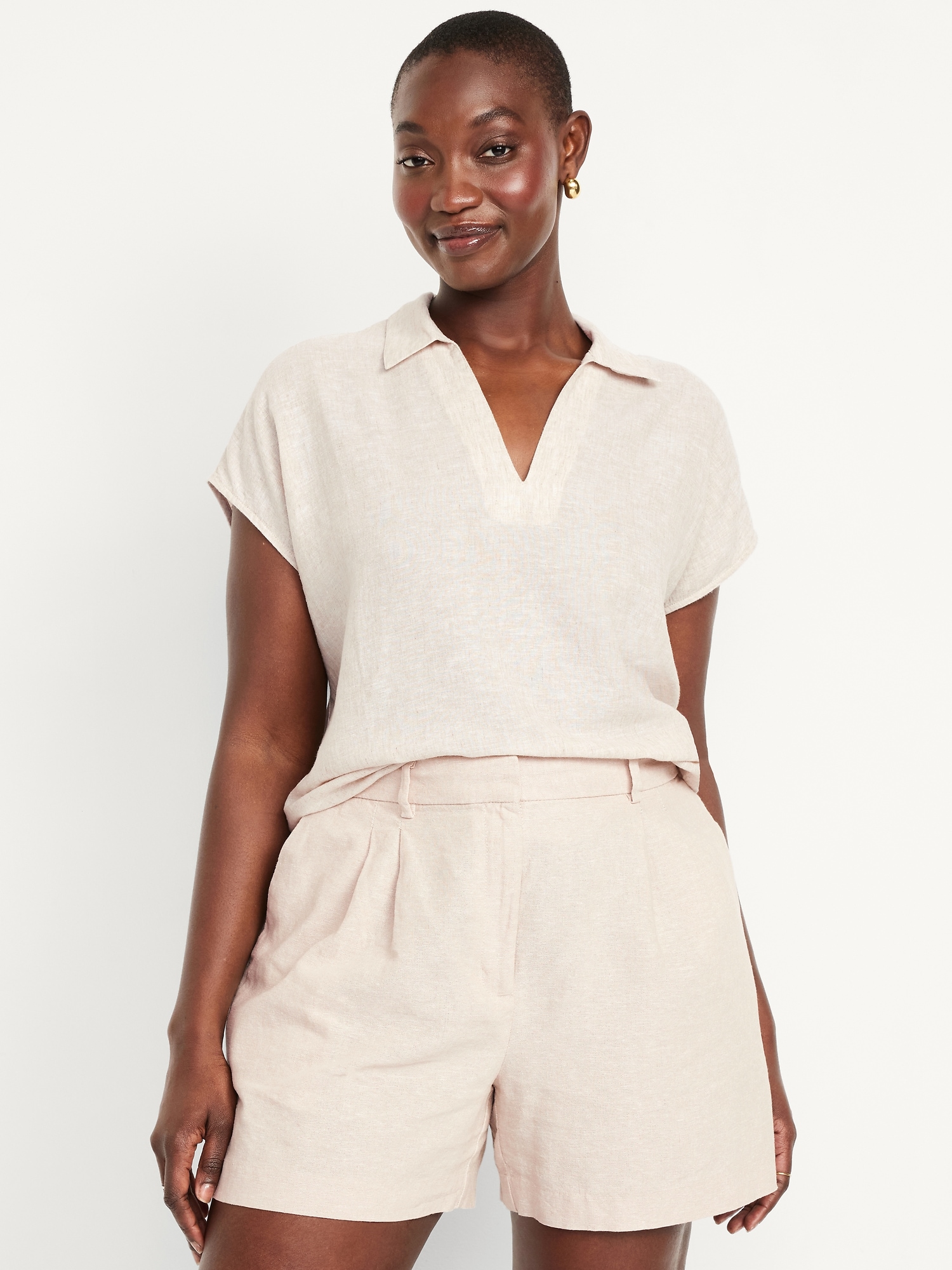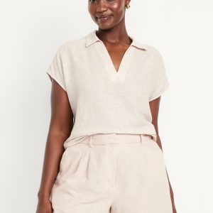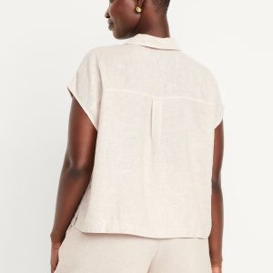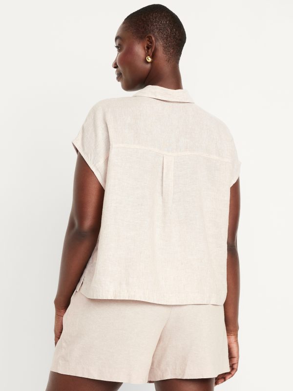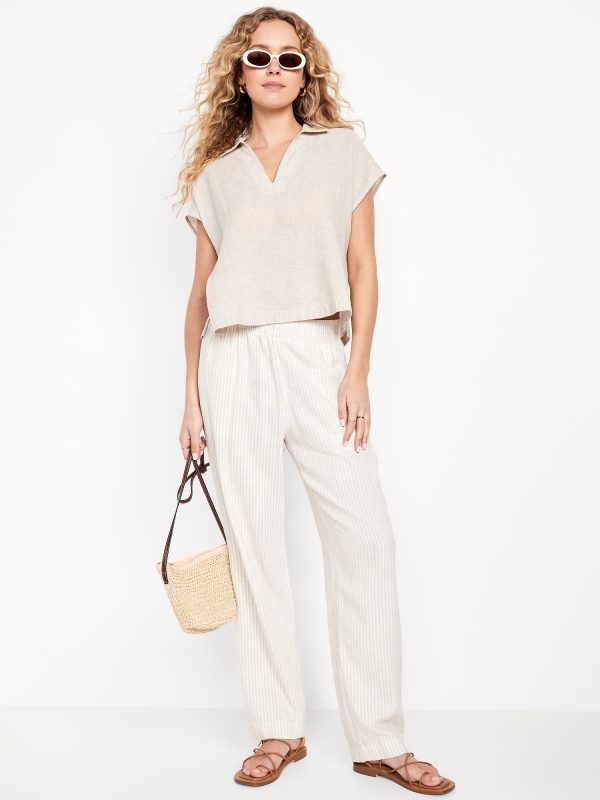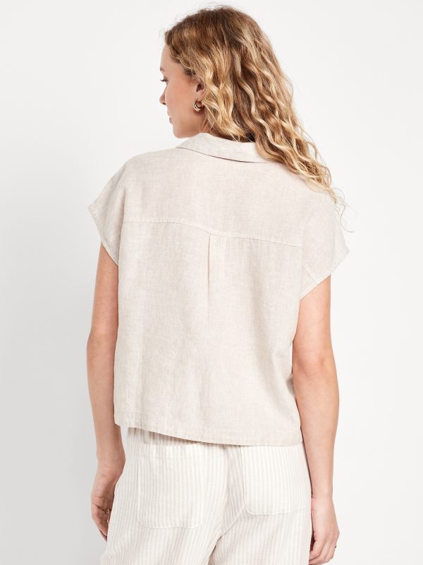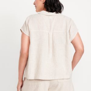 Linen-Blend Cropped Popover Shirt