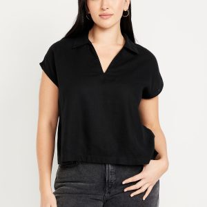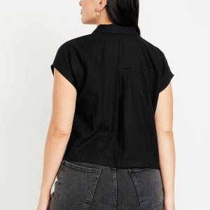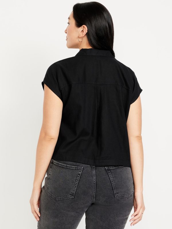 Linen-Blend Cropped Popover Shirt