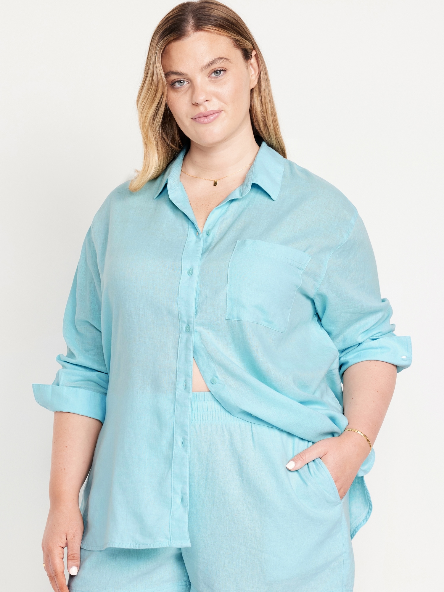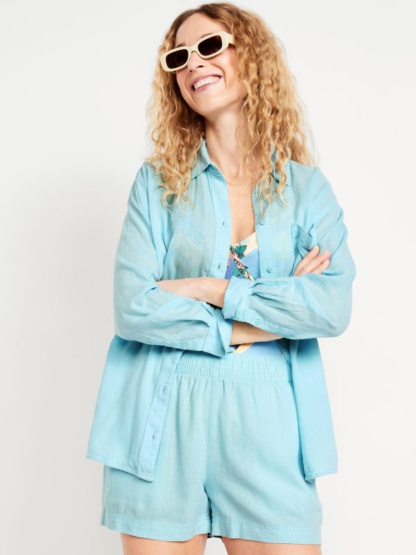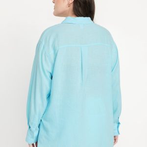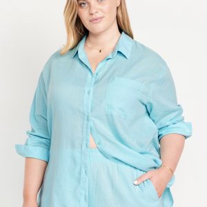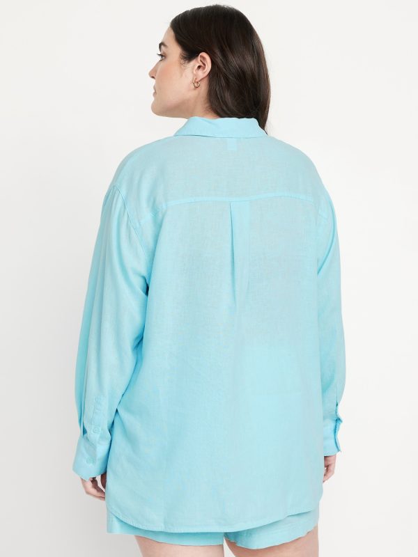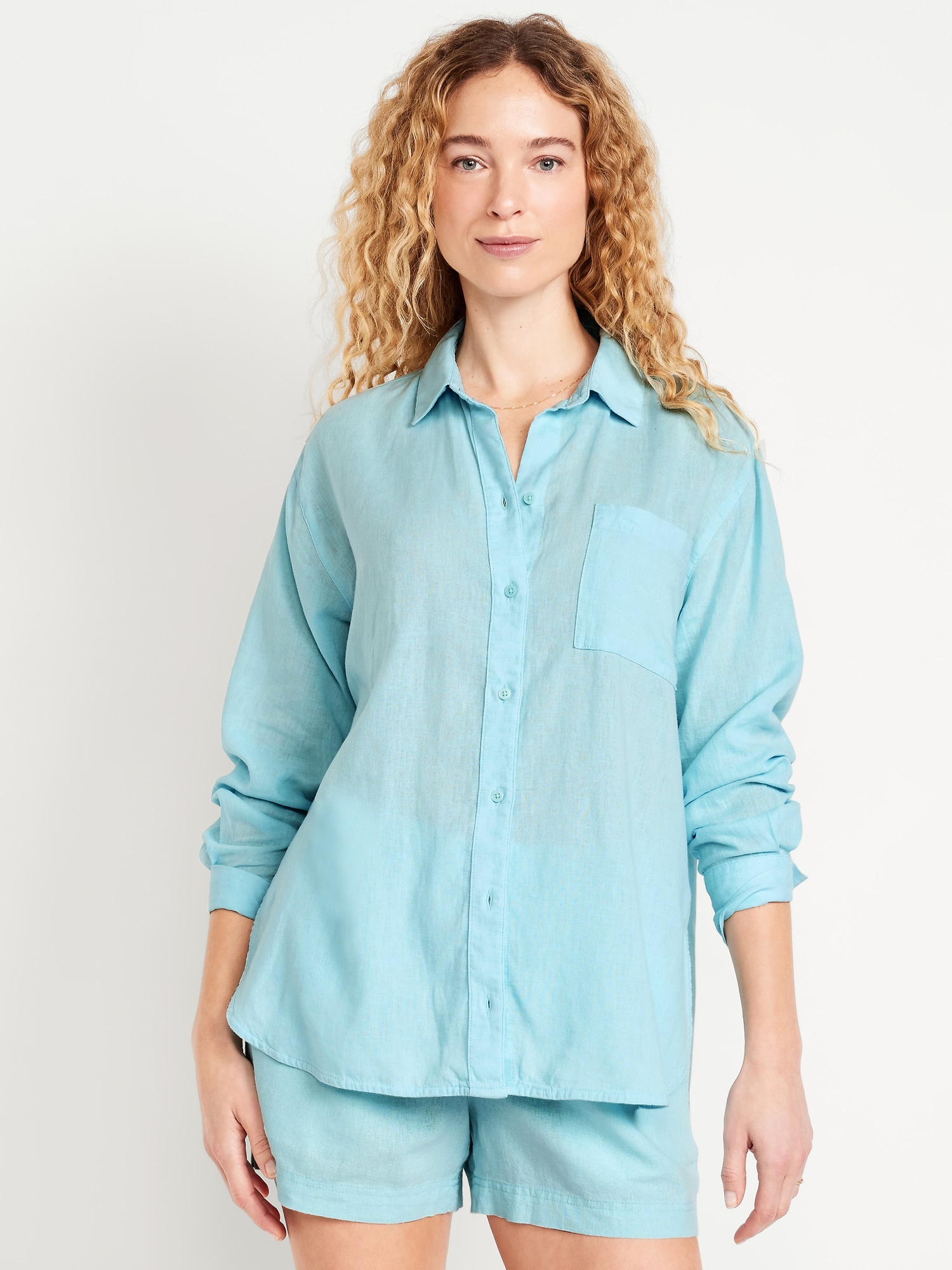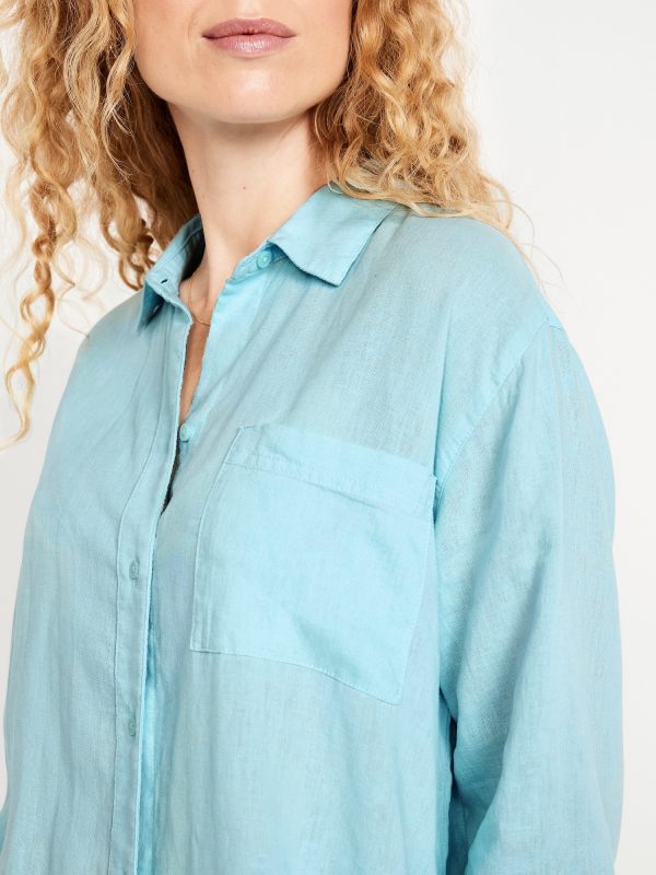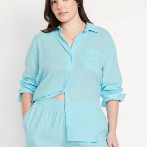 Linen-Blend Loose Button-Down Shirt