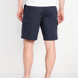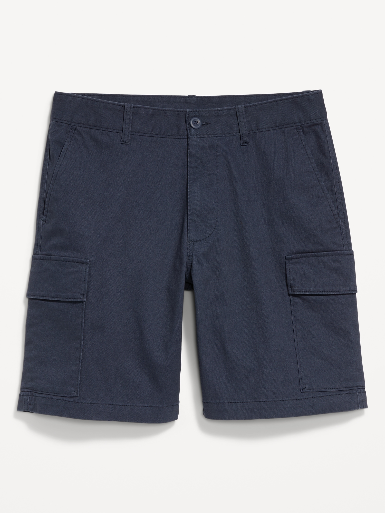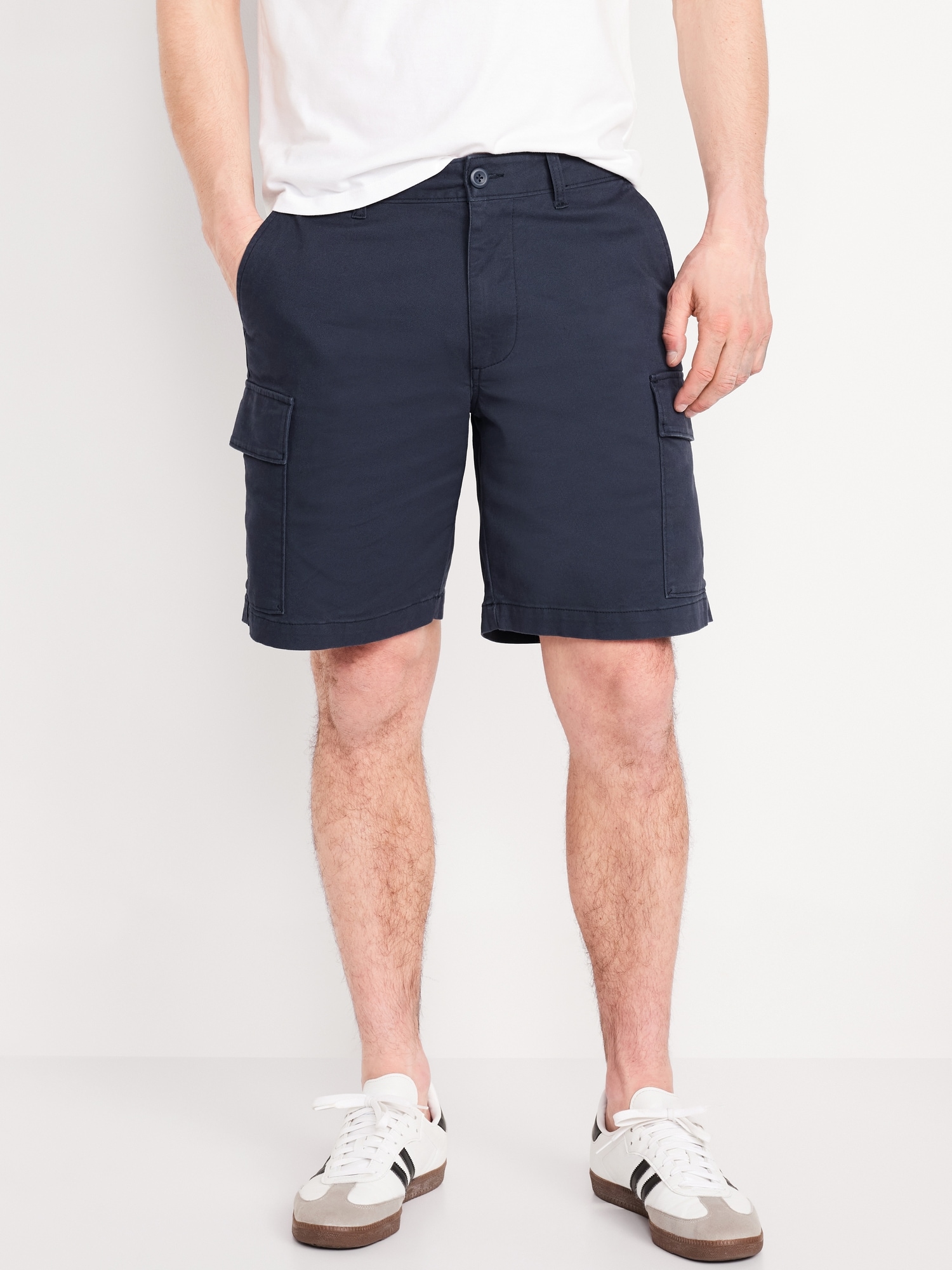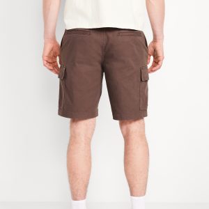 Lived-In Cargo Shorts — 9-inch inseam: button front, belt loops, zip fly, diagonal front pockets, back welt pockets, flap-cargo pockets at thigh, #695513