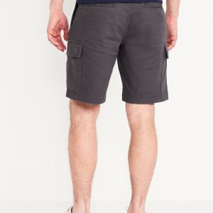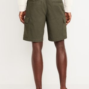 Lived-In Cargo Shorts — 9-inch inseam: button front, belt loops, zip fly, diagonal front pockets, back welt pockets, flap-cargo pockets at thigh, #695513
