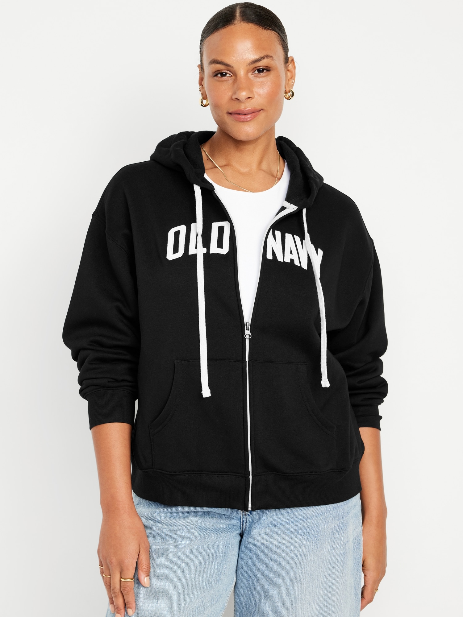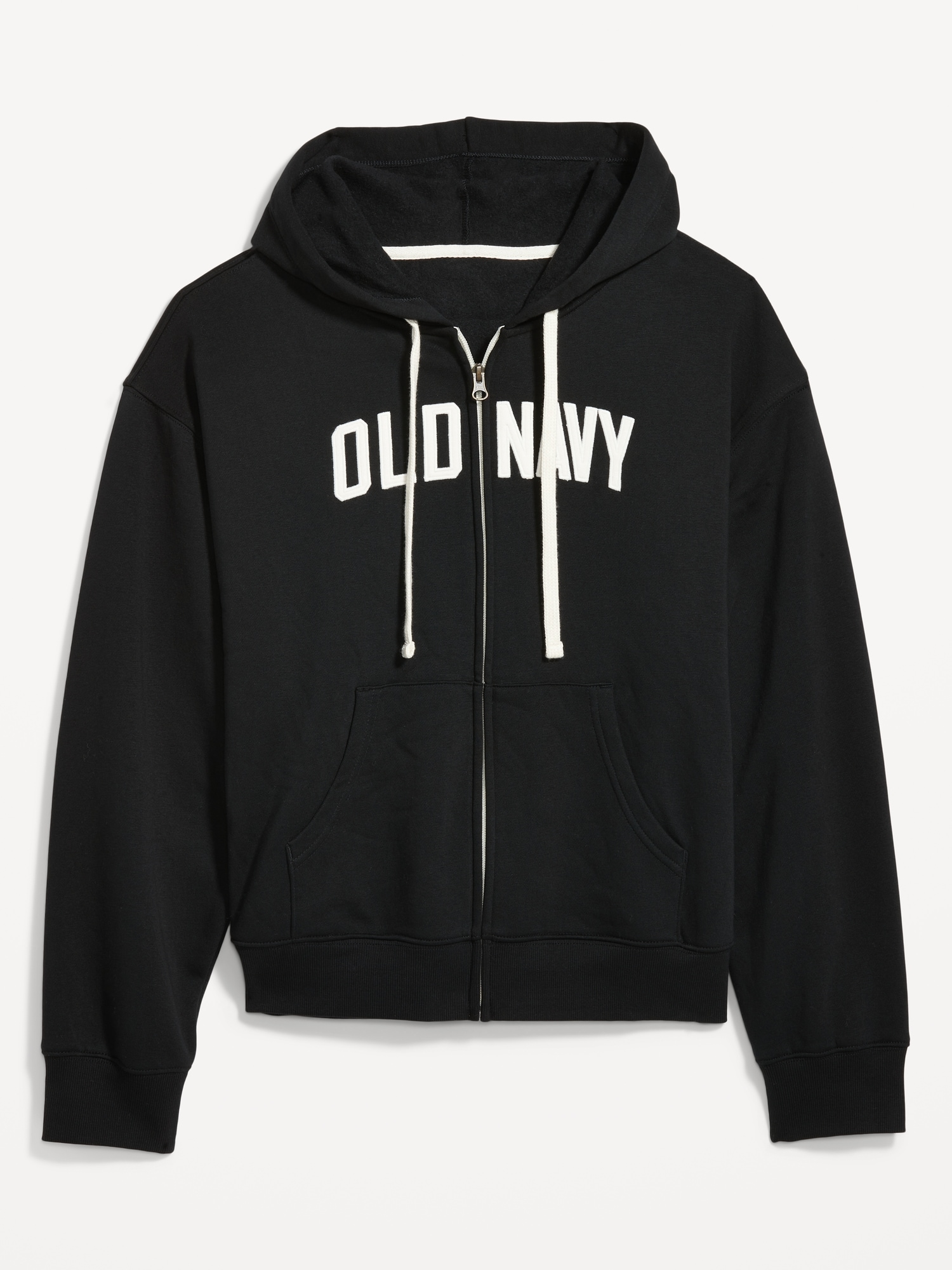 Logo Zip Hoodie Sweatshirt: available exclusively online and at outlet stores, drawstring hood, drop-shoulder sleeves, full-zip front, hand-warming pockets, rib-knit trim, #864993