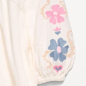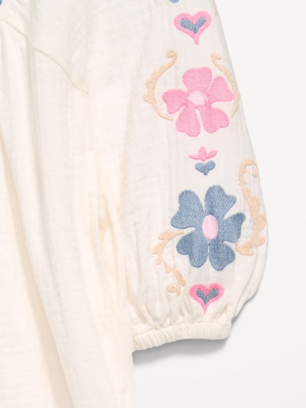 Long-Sleeve Double-Weave Embroidered Swing Dress for Girls