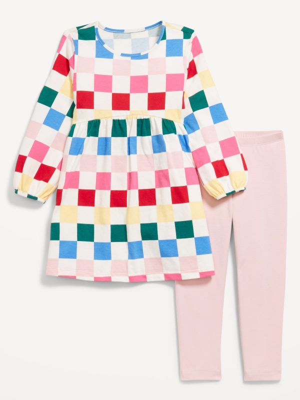 Long-Sleeve Dress and Leggings Set for Toddler Girls