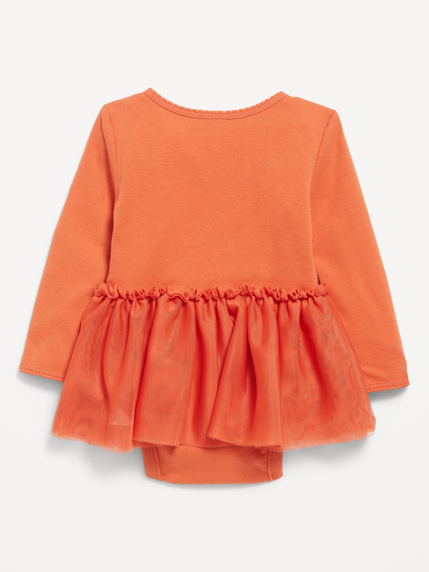 Long-Sleeve Graphic Bodysuit Tutu Dress for Baby: crew neck, long sleeves, graphic at front, snaps at inseam, flared tutu skirt, lightweight tulle mesh layers, #802251