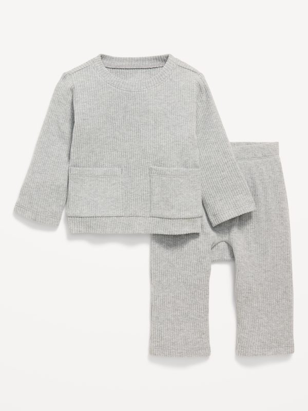 Long-Sleeve Ribbed Pocket T-Shirt and Pants Set for Baby