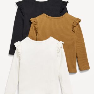 Long-Sleeve Ribbed Ruffle-Trim T-Shirts 3-Pack for Toddler Girls