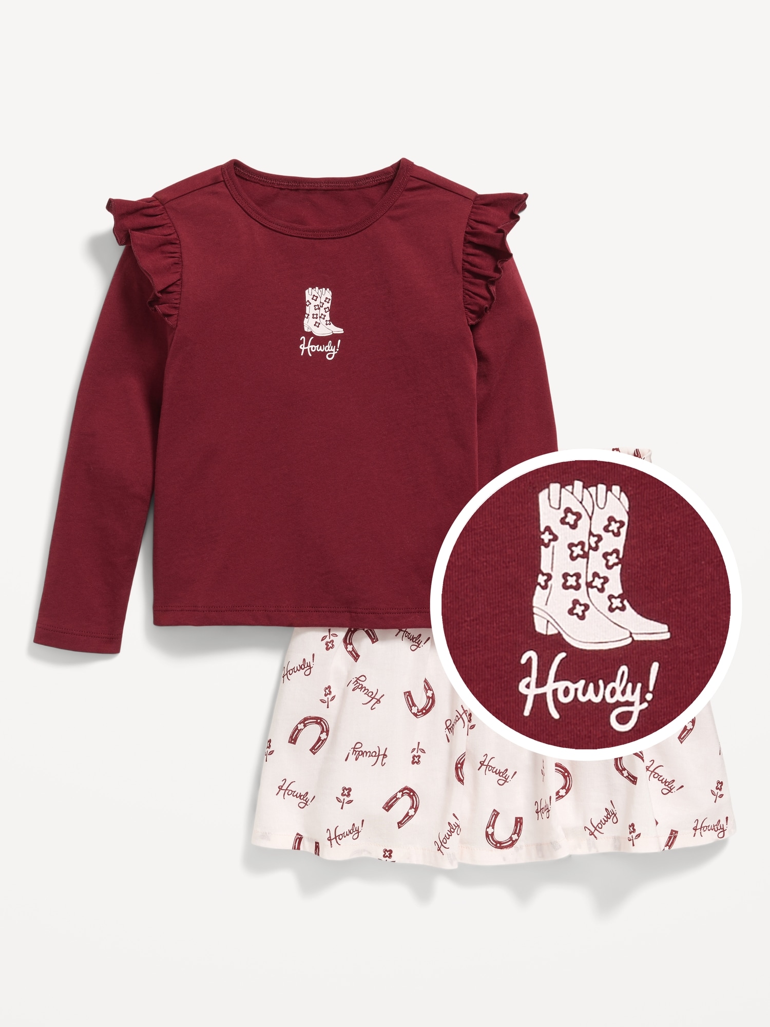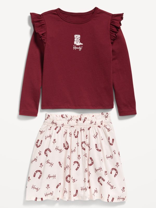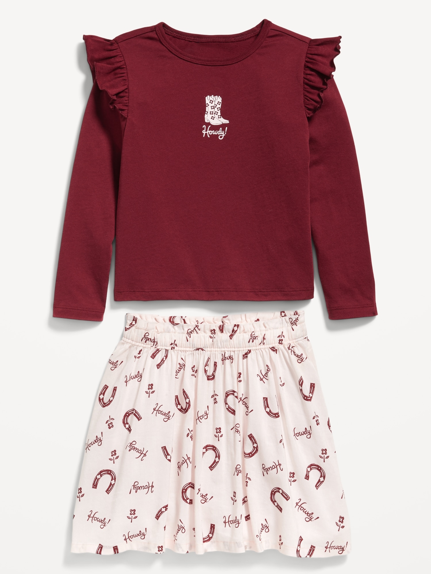 Long-Sleeve Ruffle T-Shirt and Skirt Set for Toddler Girls