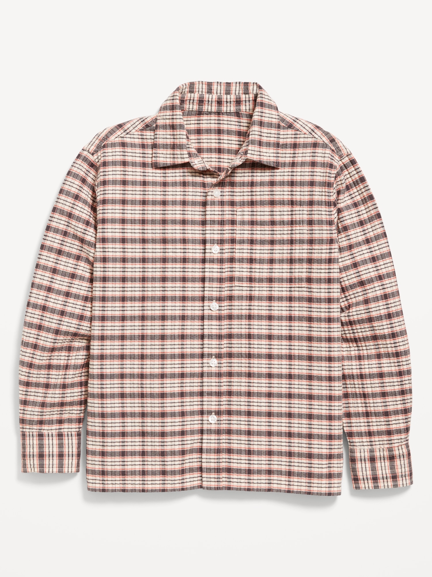 Long-Sleeve Textured Plaid Pocket Shirt for Boys