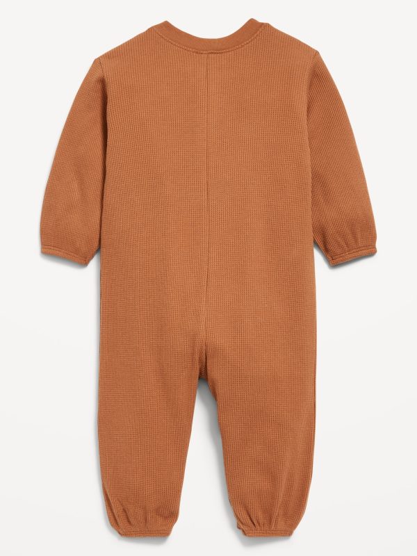 Long-Sleeve Waffle-Knit Henley One-Piece for Baby