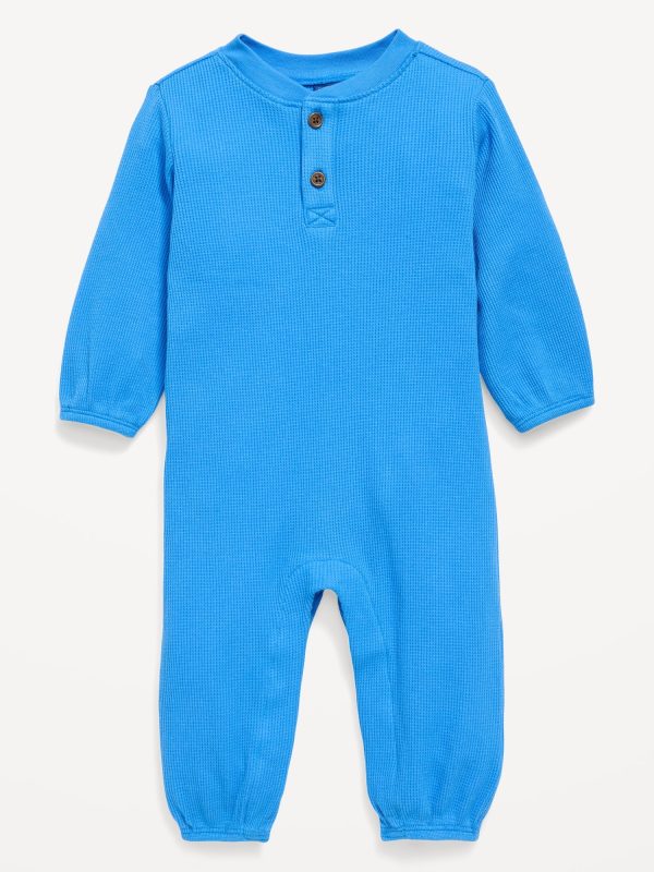 Long-Sleeve Waffle-Knit Henley One-Piece for Baby