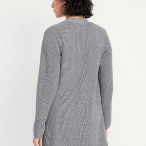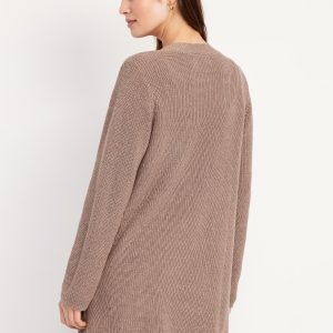 Longline Open-Front Sweater: long sleeves, patch pockets, vented sides, #784424