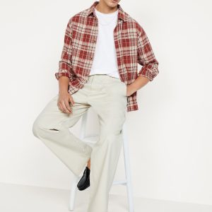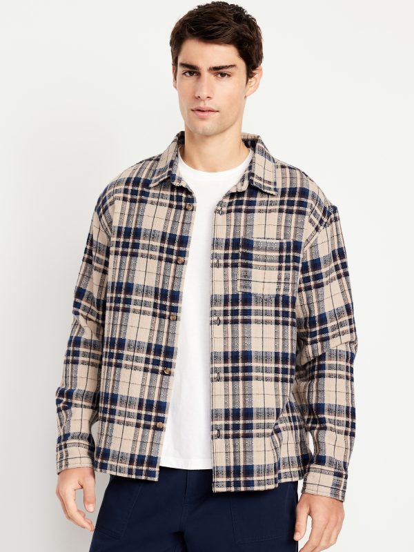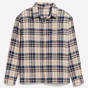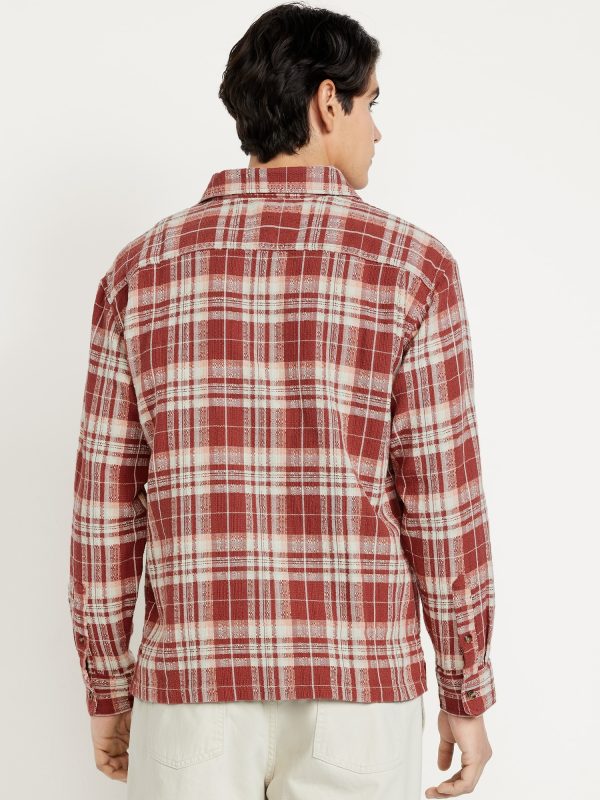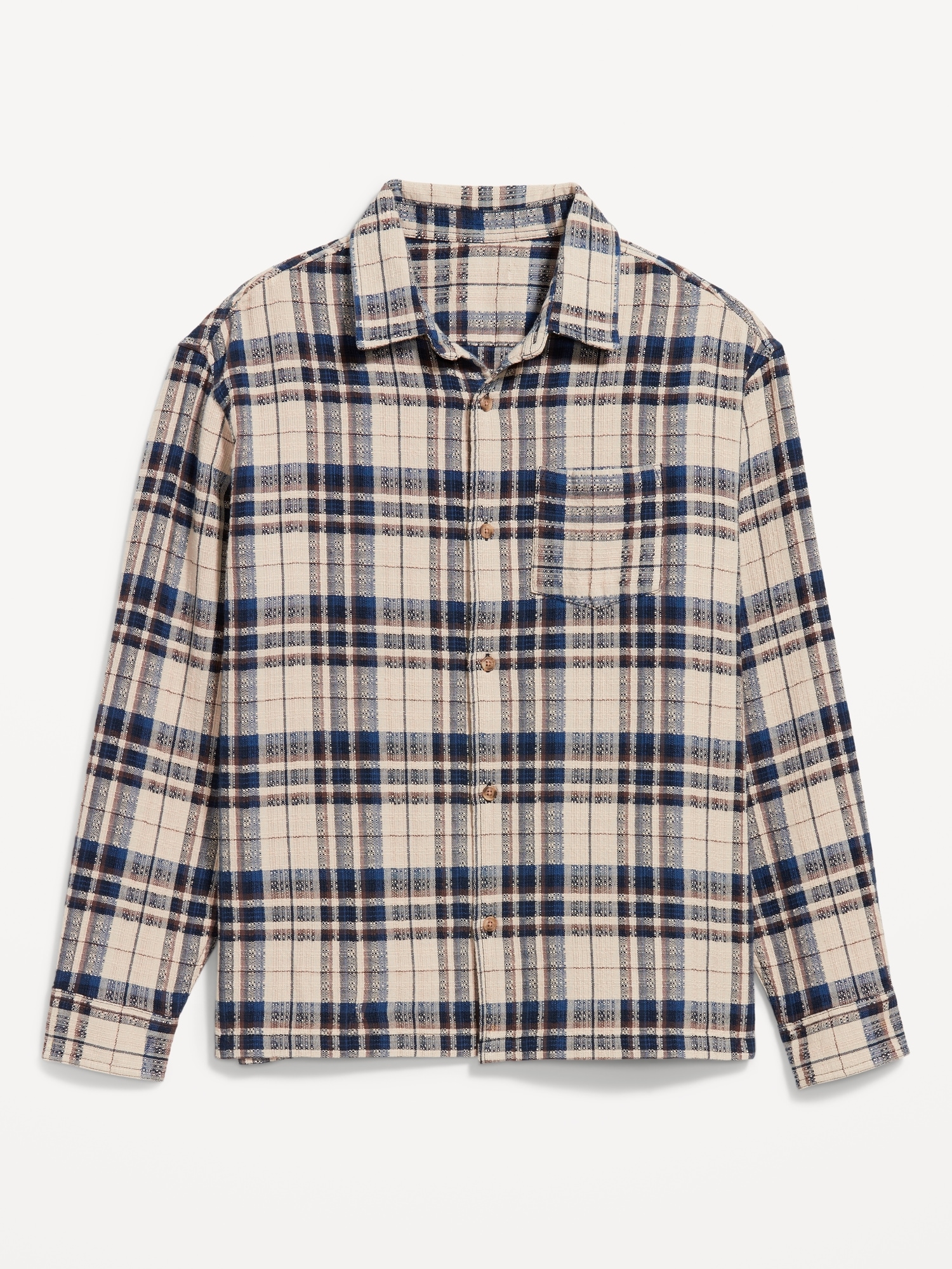 Loose Fit Plaid Pocket Shirt: spread collar, long sleeves with buttoned cuffs, full-button front, patch chest pocket, plaid print, #762448