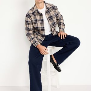 Loose Fit Plaid Pocket Shirt: spread collar, long sleeves with buttoned cuffs, full-button front, patch chest pocket, plaid print, #762448