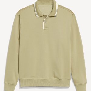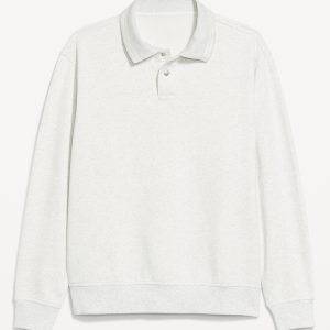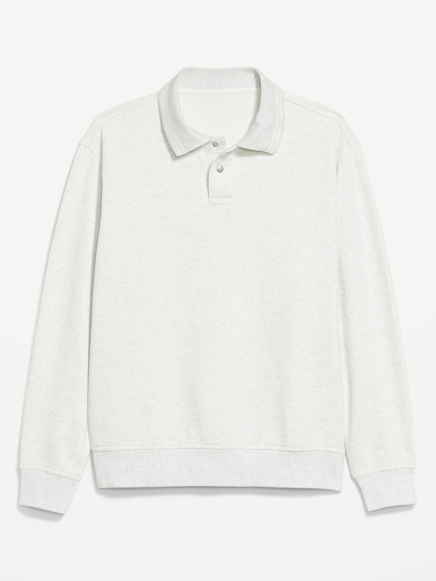 Loose Fleece Polo: rib-knit collar, long sleeves, snap placket, rib-knit cuffs and hem, pullover style, #787707