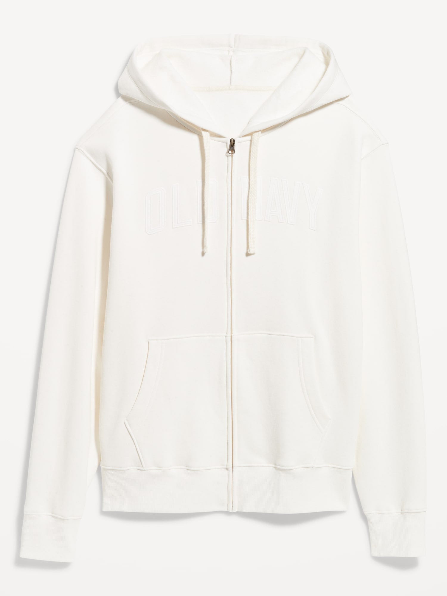 Loose Logo Zip Hoodie: drawstring hood, long sleeves, logo chest graphic, full-length zipper, hand-warming pockets, rib-knit trim, available exclusively online and at outlet stores, #846608
