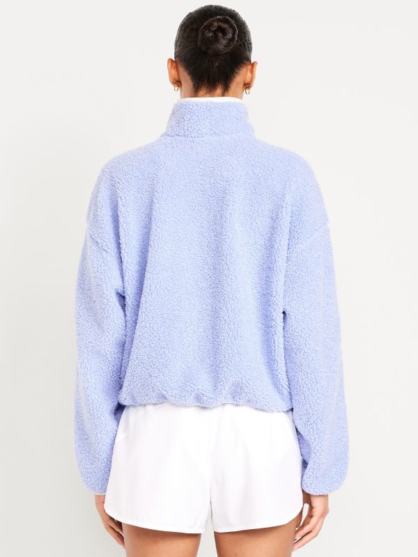 Loose Sherpa Quarter-Zip Pullover: quarter-zip funnel neck, drop-shoulder sleeves, front pockets, contrasting trim, elastic cuffs and hem, #784870