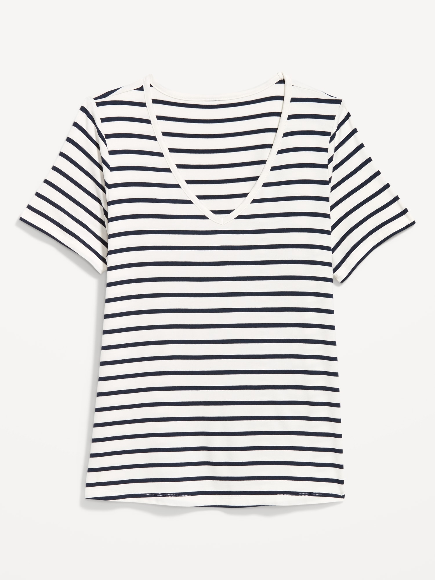 Luxe V-Neck Striped T-Shirt: A draped, flawless fit that’s ultra soft.v-neck, short sleeves, #796584