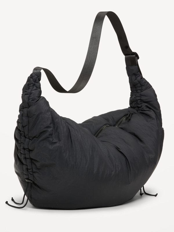 Macro Trek Bag: zip top closuredrawstring detail at sides, adjustable shoulder strap, #761651
