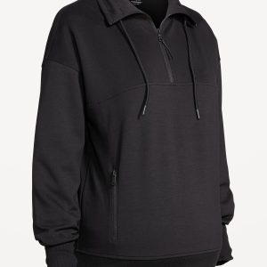Maternity Bounce Fleece Half-Zip Pullover: Featuring Bounce Fleece. A smooth, cooling finish that feels good and looks chic everywhere you go.half-zip funnel neck, long drop-shoulder sleeves with pleated cuffs, on-seam pockets, easy pullover style, breathable, #826400