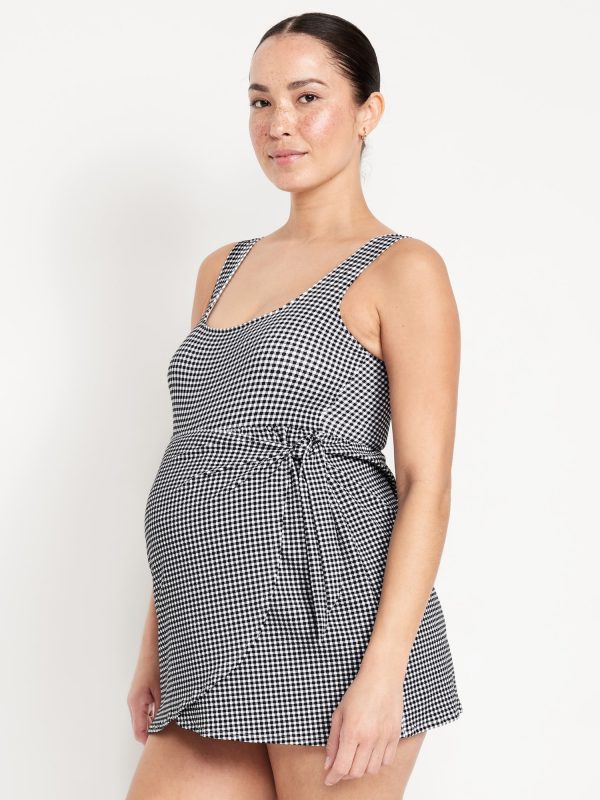 Maternity Classic Wrap Pique Swim Dress: square neck, sleeveless, removable pads, built-in briefs, side-tie, #756110