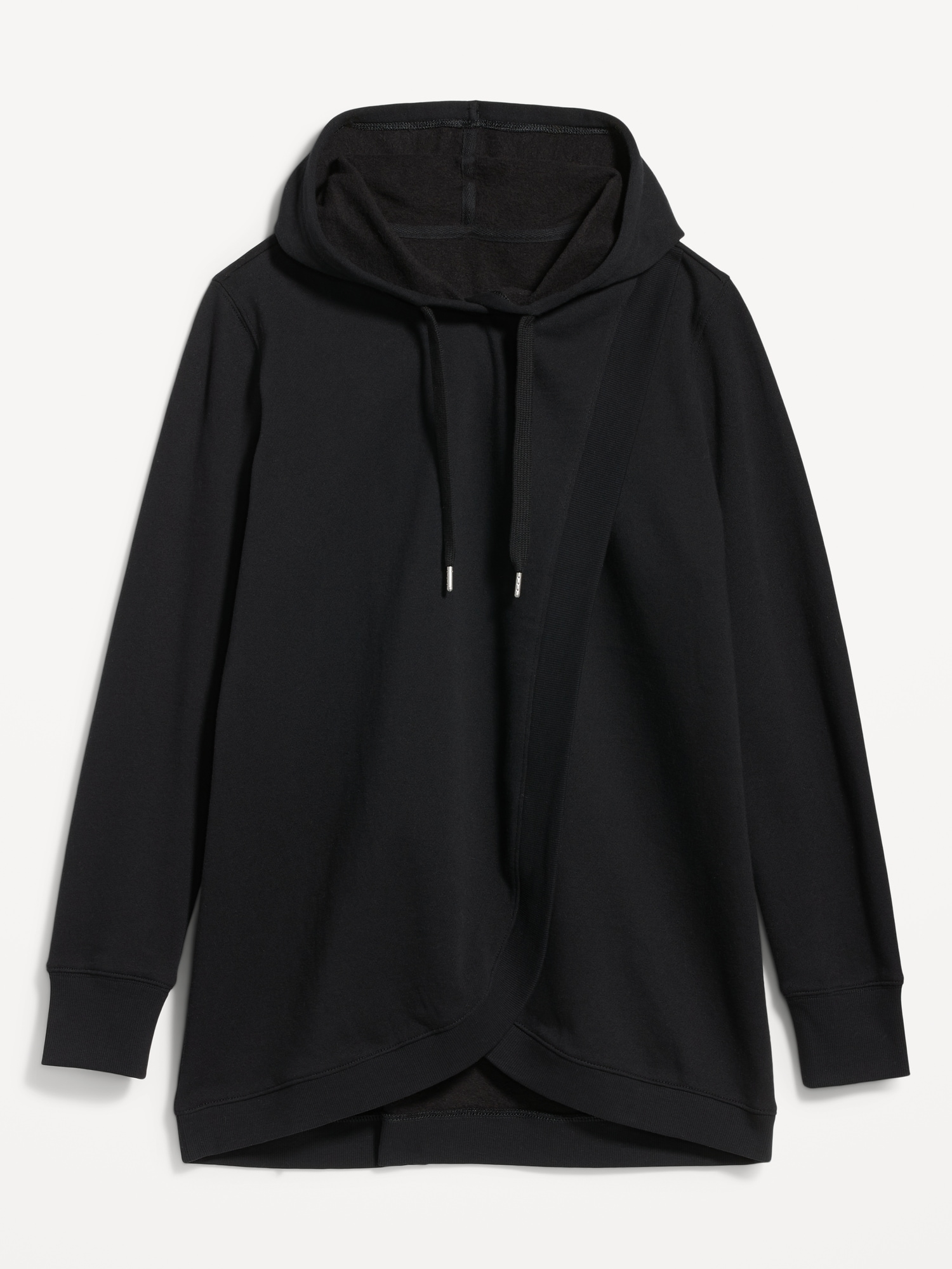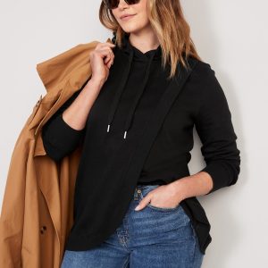 Maternity Cross-Front Nursing Pullover Hoodie: adjustable drawstring hood, long sleeves, rib-knit cuffs, cross front for convenient nursing access, rib-knit front and hem, pullover style, #578188
