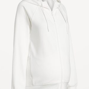 Maternity Cross-Front Nursing Pullover Hoodie: adjustable drawstring hood, long sleeves, rib-knit cuffs, cross front for convenient nursing access, rib-knit front and hem, pullover style, #578188