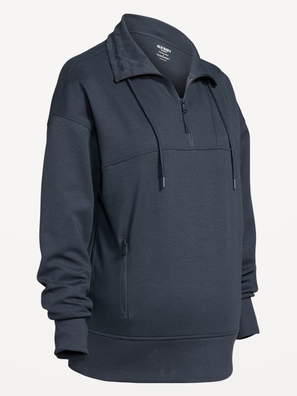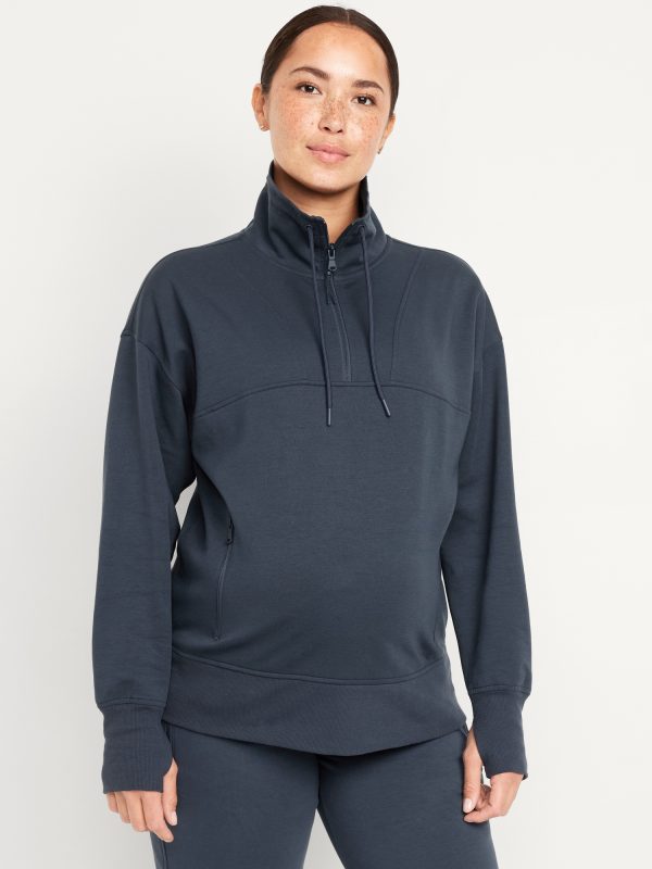 Maternity Dynamic Fleece Half Zip: Featuring Dynamic Fleece. Soft, smooth fleece plus made-to-move stretch.drawstring funnel neck, long sleeves, thumbhole cuffs, half-zip front, zip pockets, rib-knit trim, pullover style, #596853