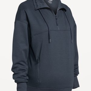 Maternity Dynamic Fleece Half Zip: Featuring Dynamic Fleece. Soft, smooth fleece plus made-to-move stretch.drawstring funnel neck, long sleeves, thumbhole cuffs, half-zip front, zip pockets, rib-knit trim, pullover style, #596853