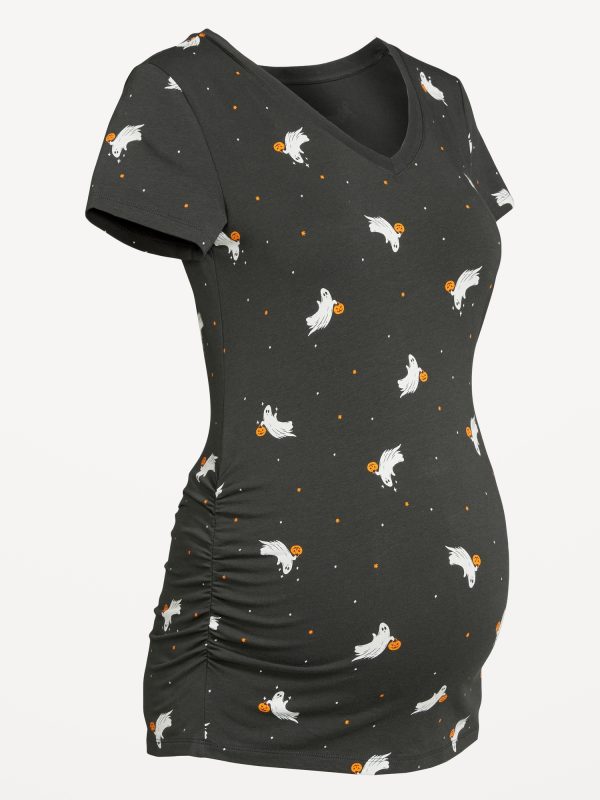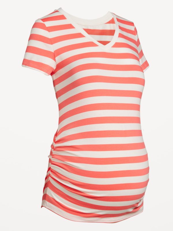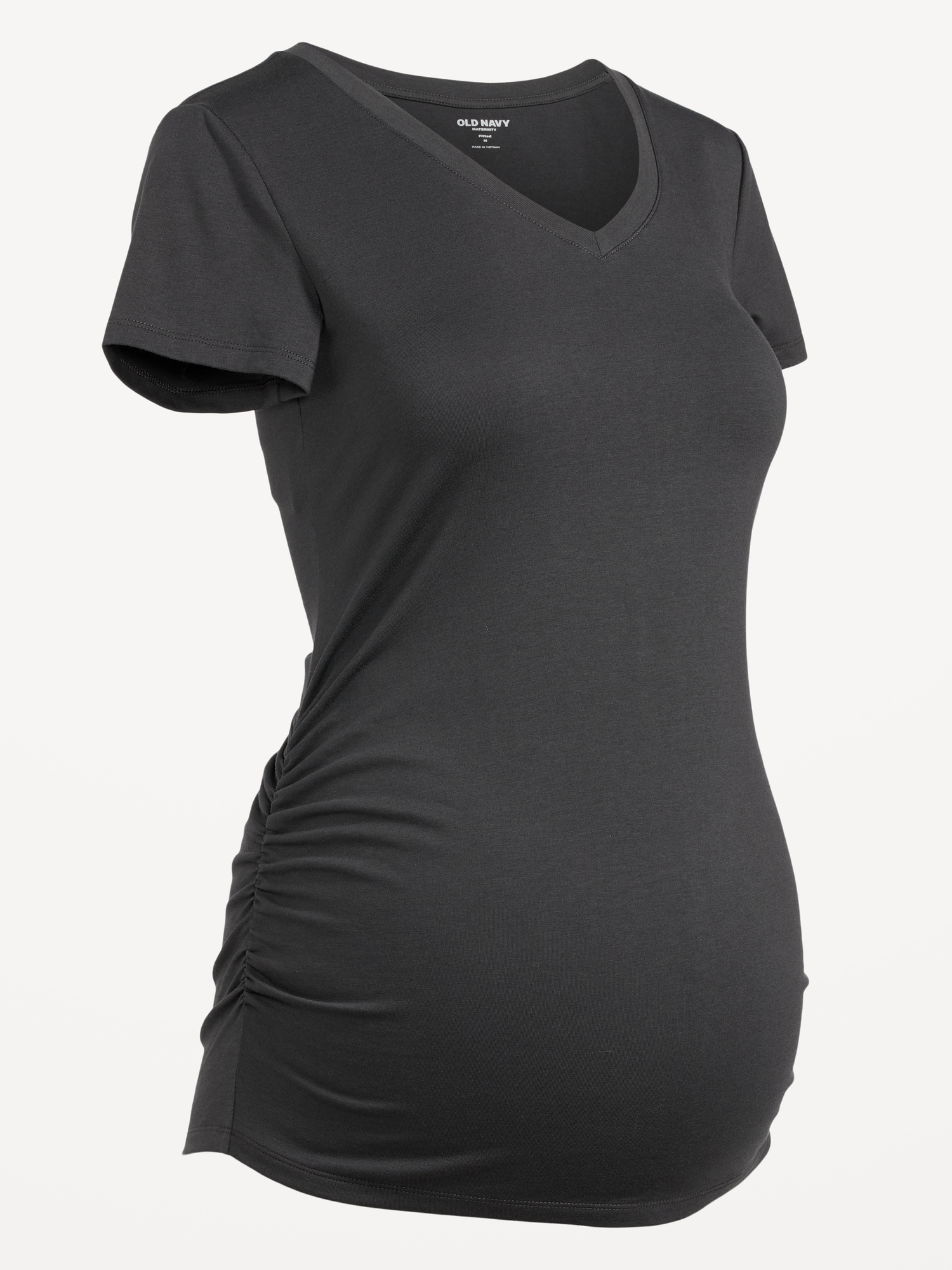 Maternity EveryWear V-Neck T-Shirt: short sleeves, shirred sides for a flexible fit, #417926